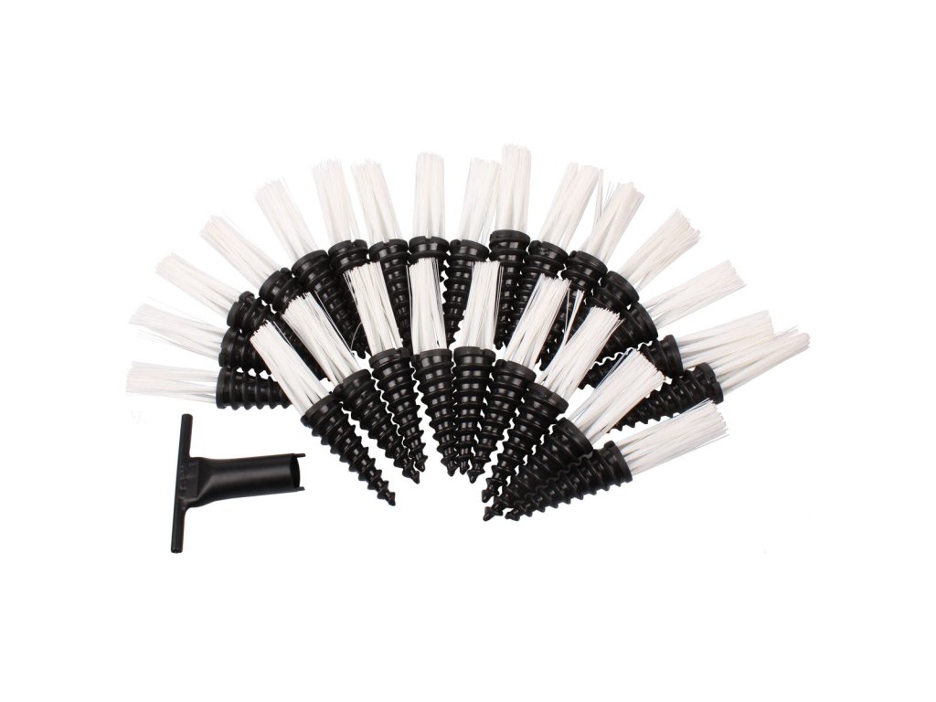 Značkovací systém Pitch Marker je kvalitní pomůcka pro vymezení tréninkové plochy, vyznačování lajn, velkého, malého vápna nebo středového kruhu u travnatého (fotbalového) hřiště, poté zaručuje přesné, rychlé nalajnování. Značkovací systém nabízíme v několika barvách. Klasicky jednoduchá manipulace díky šroubovací kovové hlavici, do které zasunete kolík. Kolík je vyrobený z odolného plastu a připomíná vrták. Otáčivými pohyby jednoduše upevníte kolík do travnaté plochy. Vrták má na horní straně barevné štětinky pro dobrou viditelnost. Využití nalezne také u vyznačení pozemků (staveb), parkovacích ploch, tras energetických rozvodů, apod. V balení naleznete 25 kusů vyznačovacích kolíků a 1 kus šroubovací hlavice. Doporučujeme: Jakmile kolík zarazíte do země, nasypejte do štětinek trochu jemného písku a udusejte, aby se vlákna štětinek co nejvíce rozevřela a vytvořila tak vějíř o průměru cca 7-8 cm. Parametry: výška kolíku: 10 cm výška štětinek: 8 cm obsah balení: 25x kolík, 1x šroubovací hlaviceDoplňkové parametry