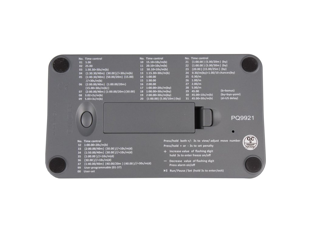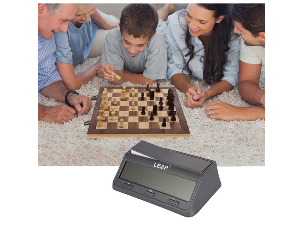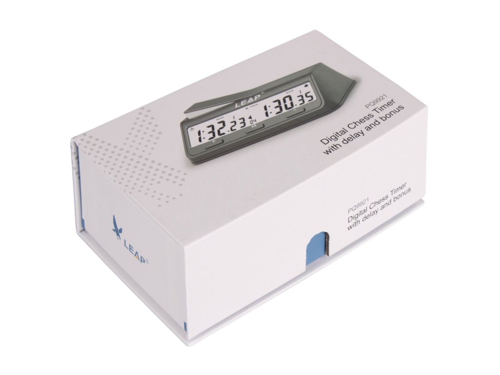 Digitální šachové hodiny LEAP PQ9921 nabízejí všechny funkce potřebné pro profesionální využití při hře aktivních hráčů všech výkonnostních úrovní na šachových turnajích nebo při tréninku v šachových oddílech. Hodiny v čistém moderním designu jsou vyrobené z odolného plastu a jsou napájeny jednou baterií AA. Snadno se ovládají a jejich nastavení je jednoduché a intuitivní. Přes své malé rozměry disponují hodiny velkým LCD displejem, takže měřený čas i zobrazení ostatních funkcí je dobře zřetelné a přehledné. Funkce -37 předprogramovaných nastavení pro všechny typy her včetně odpočítávání (jedno nebo více období), bonus/přírůstek, zpoždění, byo-yomi, omezené pohyby a funkce omezení času. - Speciální uživatelský režim "00" se 4 samostatnými časovými úseky. - Speciální uživatelský režim paměti "99" pro zachování vašich změn 37 nastavení. - Vytvoření a uložení vlastního režimu časování pro každého hráče, možnost snadno měnit čas během hry. - Schopnost kontrolovat a měnit počet tahů ve všech režimech časování. Pomáhá rozhodčím při přidávání časových trestů. - Zvukový alarm i zmrazení času lze zapnout nebo vypnout. - Při vypnutí/zapnutí hodin zůstanou poslední uživatelské parametry zachovány. (Pokud byly vyjmuty baterie, přednastavené parametry zmizí). - Velký LCD displej. - Napájení: 1ks AA baterie (není součástí balení). - Rozměr, šířka x výška x hloubka: 14,5 x 4 x 8,5 cmDoplňkové parametry