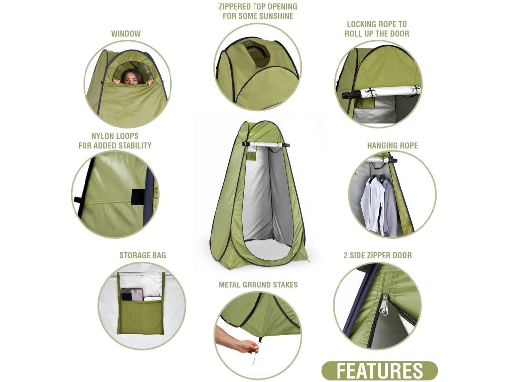 Praktický převlékací stan Merco Private zajišťuje komfort při převlékání na zaplněných plážích u vody, festivalech, v kempech nebo ateliérech. Stan s uzavřenou střechou je vyroben z polyesterové tkaniny 190T, což je silné polyesterové vlákno, které poskytuje vynikající odolnost proti UV záření. Private postavíte během několika sekund a do požadovaného tvaru se rozloží prakticky sám. Uvnitř stanu naleznete kapsu, která je určená pro tělovou kosmetiku, doklady, telefon a drobné doplňky. Součástí interiéru je i šňůra pro zavěšení jednotlivých kusů oblečení. Pro docílení lepší stability a odolnosti proti větru, doporučujeme použít 4 stanové kolíky, které jsou součástí balení. Rozměry stanu jsou 120 x 120 cm s výškou 190 cm. S hmotností 2 kilogramů je velmi lehký, snadno přenosný a skladný.Doplňkové parametry