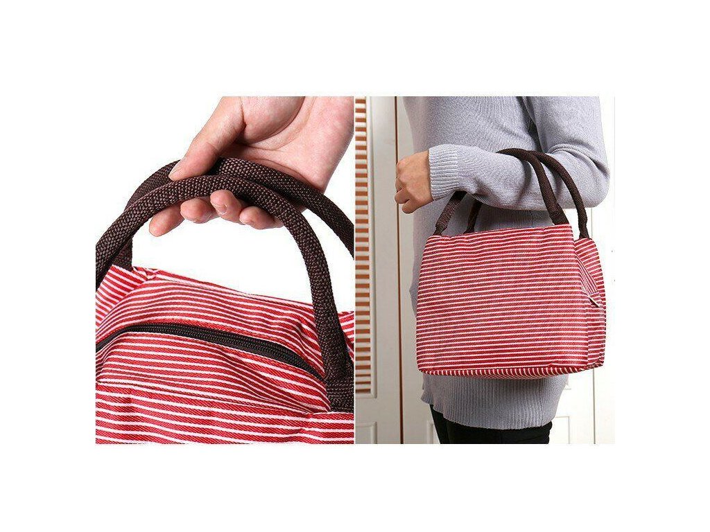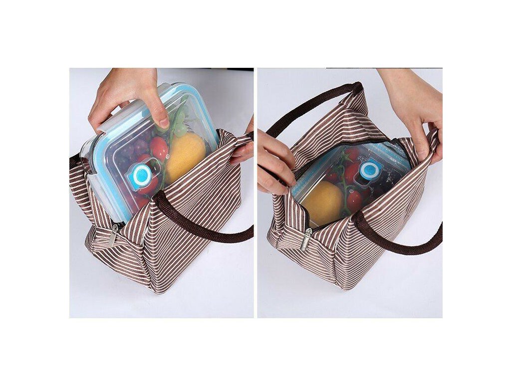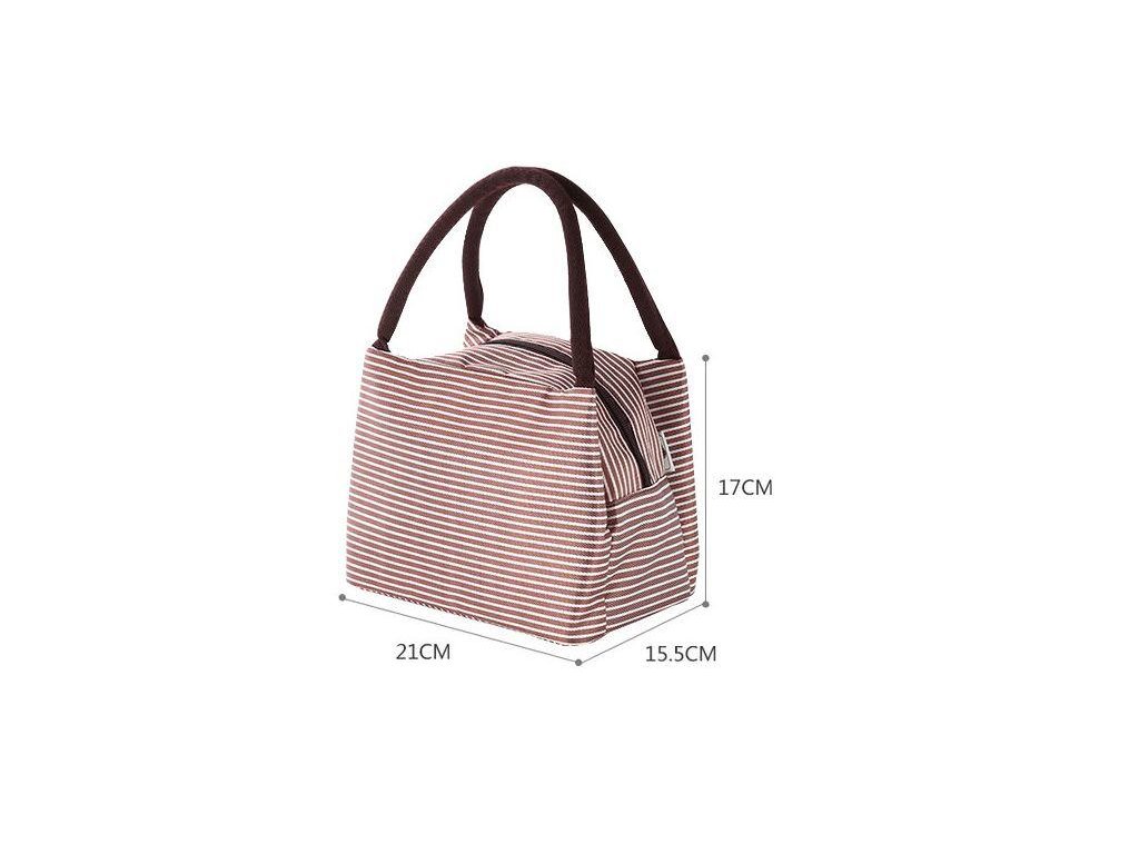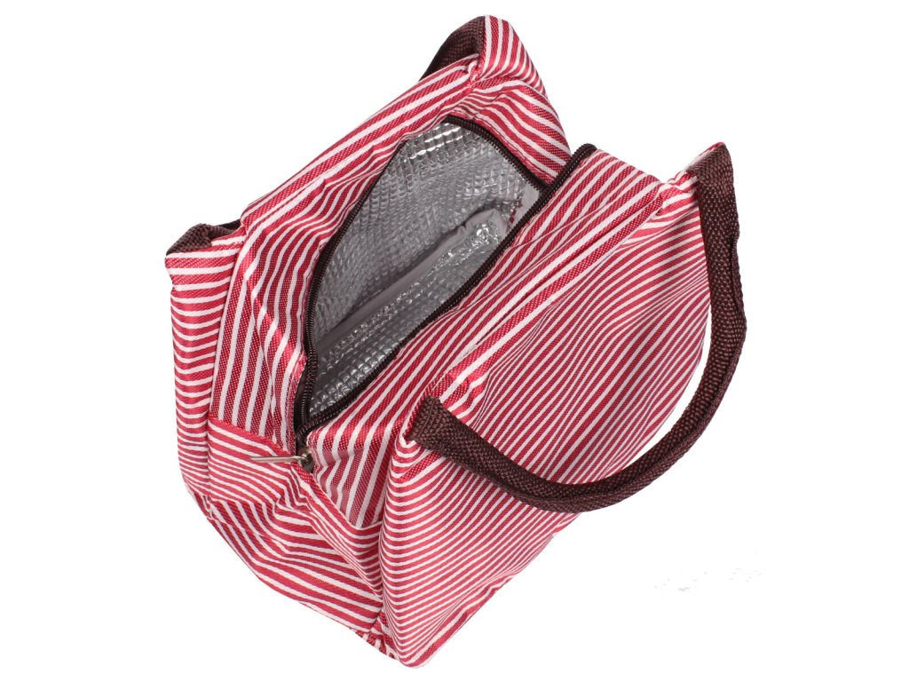Chystáte si vzít s sebou na výlet svačinu? Zapomeňte na igelitové pytlíky. S touto stylovou termotaškou Merco se vám svačina bude nosit mnohem snadněji. Taška je skvělým pomocníkem na výlety, kempování, piknik nebo k vodě. Hodí se i na přenášení oběda do práce či do školy. Termotaška má rozměry 21 x 15,5 x 17 cm a je vyrobena z tkaniny Oxford s atraktivním pruhovaným designem, který nabízíme ve třech barevných provedeních (červená-bílá, hnědá-bílá, černá-bílá). Díky vnitřní vrstvě z ALU fólie si potraviny a nápoje déle udrží svoji teplotu. Taška má zapínání na zip a dvě pevná ucha pro snadnější přenášení. Termotašku lze po použití snadno složit, aby nezabírala příliš místa. Pro odstranění případných nečistot od potravin lze termotašku otřít vlhkým hadříkem. Tašku neperte v pračce. Před výletem už tedy nezbývá nic jiného než dát do termotašky krabičku s obědem nebo svačinou, přidat ovoce a plechovku s pitím a vyrazit.Doplňkové parametry