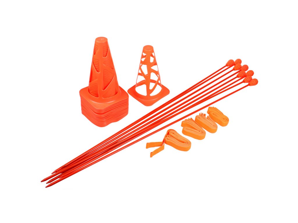 Se sadou Merco Quick Agility Set si vytvoříte během chvilky tréninkovou dráhu či vymezíte prostor dle svých představ. Tento set obsahuje šestnáct kuželů s otvory, osm sklolaminátových tyčí a čtyři elastické popruhy. Kužely jsou vyrobené z měkkého PVC materiálu, nehrozí tedy jejich mechanické poškození i při hrubším zacházení. Tyče jsou zakončené plastovou koncovkou o celkovém průměru 3 cm. Popruhy mají délku přibližně 280 cm a šířku 2 cm. Celá sada je zabalená v praktickém polyesterovém vaku s upínací šňůrkou. - sada: 16x kužel + 8x tyč + 4x elastický popruh - materiál: PVC, sklolaminát, nylon - výška kuželu: 23 cm - základna kuželu: 15 x 15 cm - délka tyče: 103 cm - popruh: 280 x 2 cm (délka x šířka) - rozměry balení: 105 x 28 x 18 cm - hmotnost balení: cca 2,2 kgDoplňkové parametry