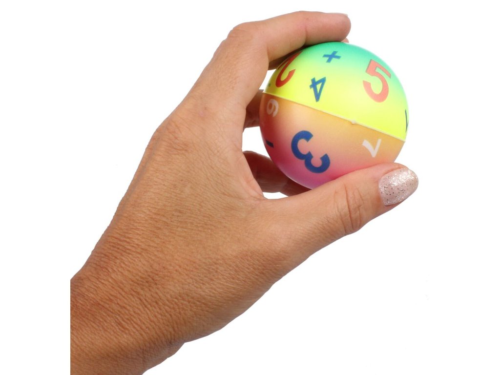 Merco Rainbow Hopik je malý míček pro děti i dospělé. Toto balení obsahuje 12 míčků v barevném designu a potiskem čísel a matematických znaků. Míček je vyrobený z měkkého PU materiálu a lze jej používat jako antistresovou pomůcku při náročném dni či jako zábavnou vzdělávací hračku pro děti. Míček má průměr 6 cm a jeho hmotnost je přibližně 12 g. Upozornění: Produkt není vhodný pro děti mladší 3 let!Doplňkové parametry