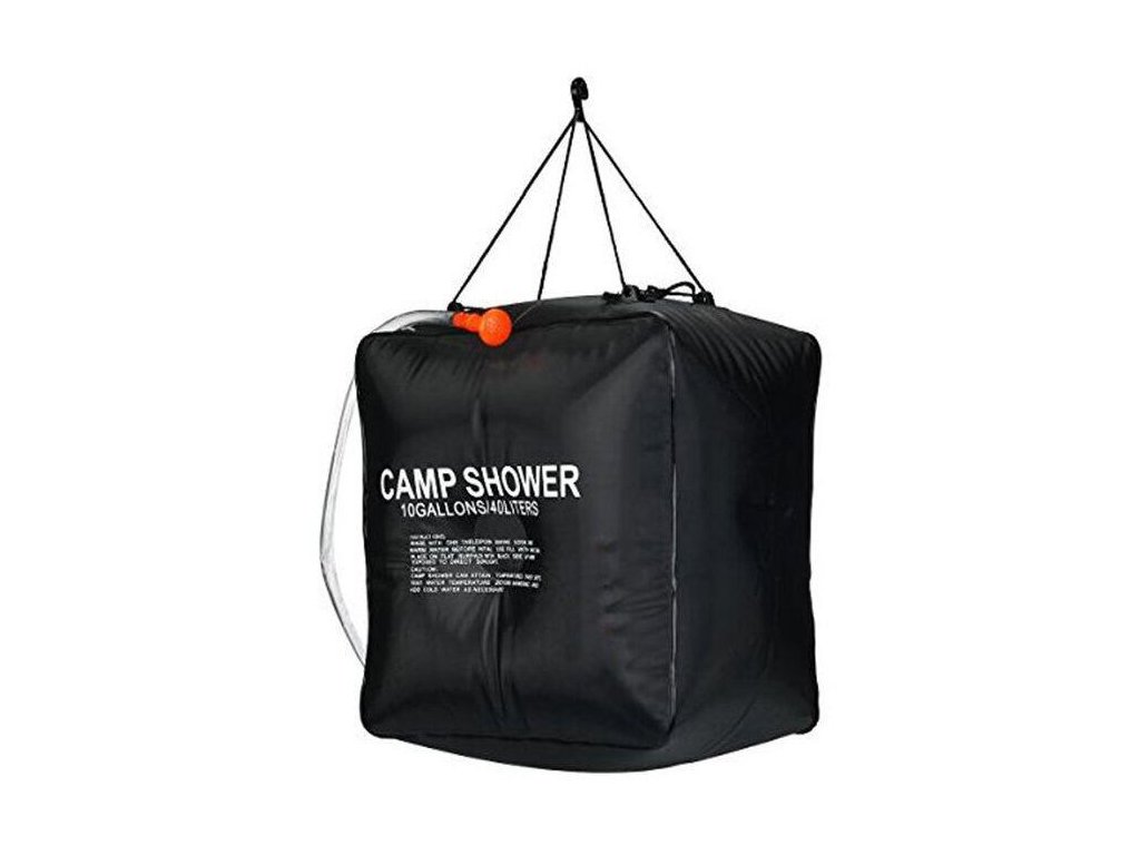 Box na vodu Merco Shower vám poslouží jako jednoduchá přenosná sprcha při kempování, na čundru a tam, kde nemáte zrovna přístup ke klasické sprše. Tento hydrovak je vyrobený z nezávadného PVC materiálu a nabízí objem až 40 l. Celkové rozměry vaku jsou 40 x 38 x 27 cm, hmotnost je přibližně 480 g. Díky použitému materiálu je lehce skládací, jednoduše ho dáte do batohu a přenesete kdykoliv a kamkoliv. Součástí vaku je výpustný ventil s 65 cm dlouhou sprchovou hadičkou a háček na provázku pro jednoduché zavěšení. Instrukce: před prvním použitím vypláchněte jednou lžící jedlé sody a teplou vodou. Naplňte vodou, položte na rovný povrch černou stranou nahoru a vystavte jej přímému slunečnímu světlu. Solární sprcha může dosáhnout teploty přes 50°C. Před sprchováním otestujte teplotu vody a v případě potřeby doplňte studenou vodu.Doplňkové parametry