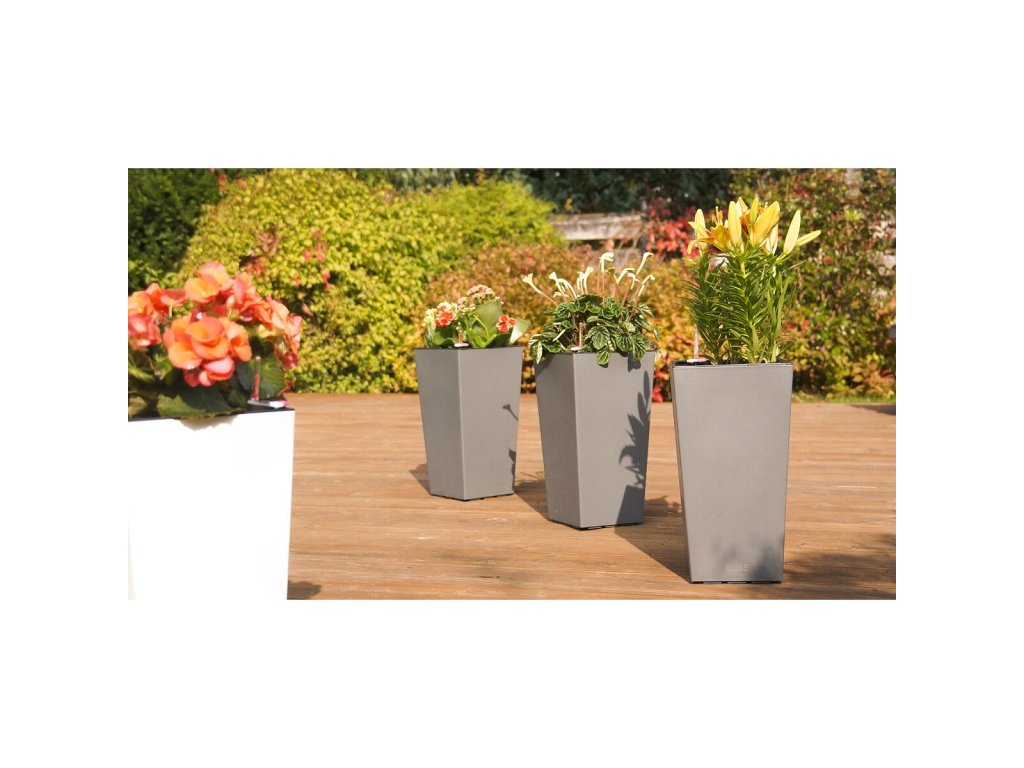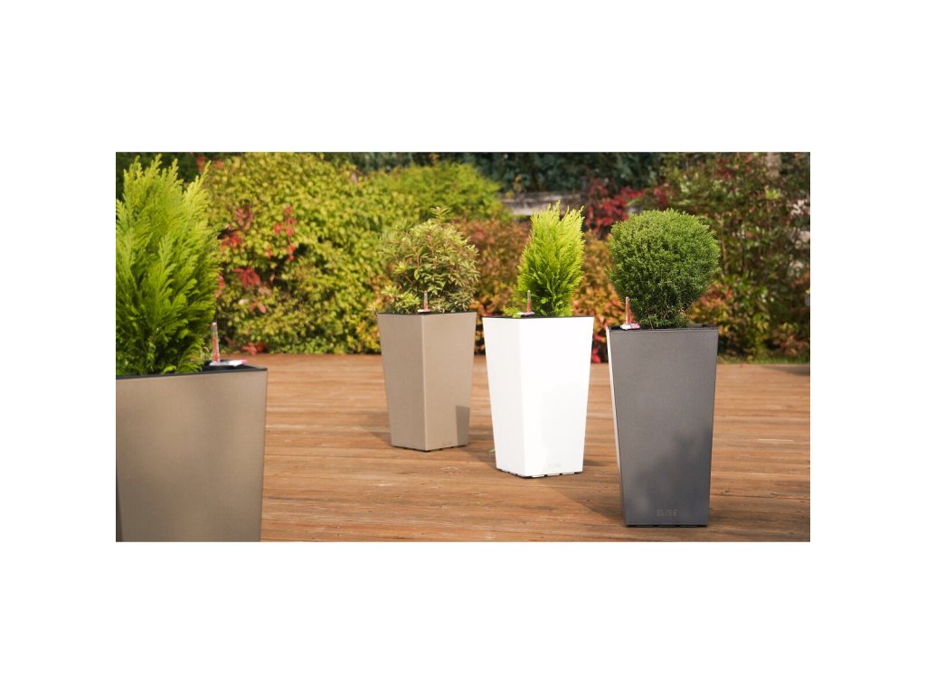 Inovativní samozavlažovací systém Smart System Elise je komponentem ke květináčům Elise Lesk a Elise Mat. Zavlažovací systém díky zásobníkům vody pohodlně zajišťuje, že se rostlinám dostává pravidelného a dlouhodobého zavlažování. Pomocí jednoduchého ukazatele hladiny vody se už nestane, že byste zapomněli květinu zalít. Součástí balení je spodní rošt s otvory, podstavce pro rošt, keramzit, který je třeba nasypat na spodní rošt, napájecí díl, ukazatel hladiny vody a datumovka. Datumovka slouží pro zaznamenávání intervalů zalévání a hnojení. Nalévací díl umístěte do jedné z děr ve spodním roštu. Dvoukomorové řešení u ukazatele hladiny vody zajišťuje nepřetržité měření hladiny, a to i při nalevání. Kompatabilita s květináči Elise Lesk a Elise Mat: Smart System Elise 20 ⇨ květináč Elise Lesk / Mat 20 Smart System Elise 25 ⇨ květináč Elise Lesk / Mat 25 Smart System Elise 30 ⇨ květináč Elise Lesk / Mat 30Doplňkové parametry