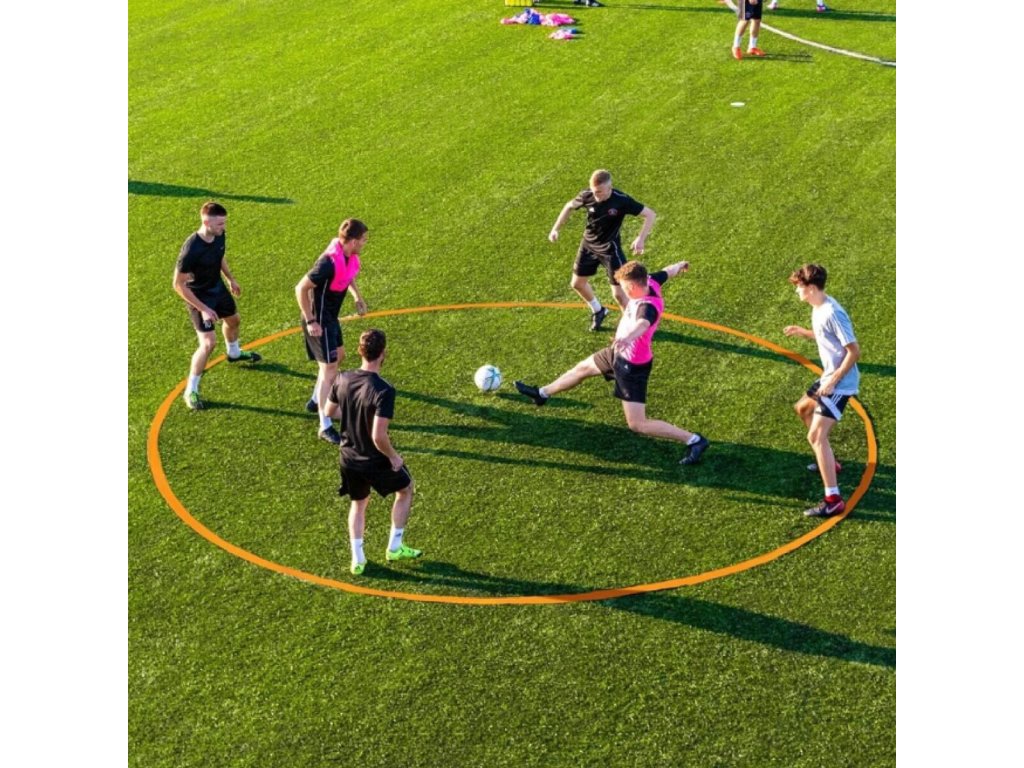 Skládací kruh Merco Soccer Ring je skvělou tréninkovou pomůckou pro fotbalové kluby a hráče všech výkonnostních úrovní. Tento kruh s průměrem 6 m slouží pro vymezení menší hrací plochy, kde si hráči procvičují a zlepšují svou techniku zpracování a držení míče, přihrávky a schopnost rychlého rozhodování. Je vhodný pro individuální i týmový trénink, ideální pro tiki-taka styl hry s důrazem na neustálý pohyb a přesnost. Díky své konstrukci kruh lehce a rychle složíte i rozložíte. Je dodávaný v praktickém polyesterovém vaku s popruhem přes rameno, díky kterému kruh pohodlně přenesete a uskladníte mezi jednotlivými tréninky. Kruh využijí nejen fotbalisté, ale i sportovní a dětské kroužky pro různé hry, kdy potřebujete vymezit daný prostor. - skvělý nástroj pro rozvoj týmové souhry, techniky a rychlosti - polyester, sklolaminát - průměr: 6 m - rozměry balení: 76 x 5 cm - součástí praktický vak - pro fotbalové a sportovní kluby, dětské kroužky - pro indoor i outdoor použitíDoplňkové parametry