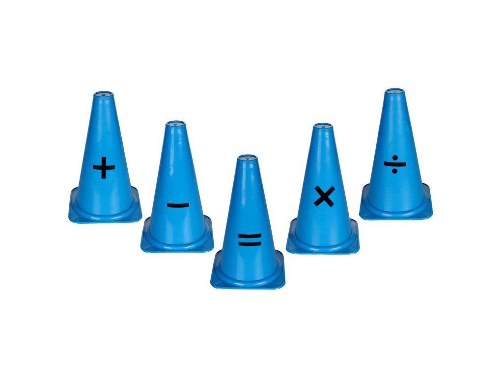 Sada kuželů Merco Symbol Set je tréninková a zároveň učební pomůcka vhodná pro školy. Tento set obsahuje pět kuželů, které jsou potištěné matematickými symboly. Kužely jsou vyrobené z odolného polyethylenu a lze je používat v tělocvičně i na hřišti. Výška kuželu je 23 cm, základna má rozměr 14,5 x 14,5 cm a hmotnost kuželu je přibližně 85 g. Zkombinujte tyto kužely i se sadou očíslovaných kuželů Merco Cone 10 či Merco Number Set a učte tak děti zábavnou formou.Doplňkové parametry