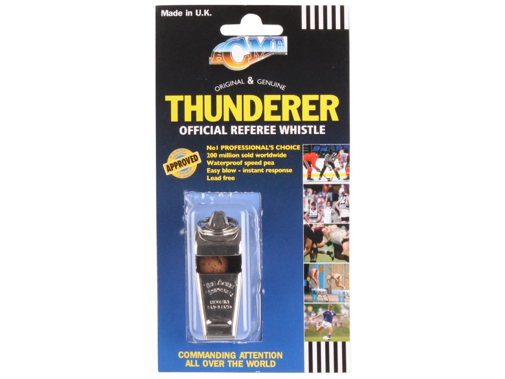 Kovová píšťalka Acme Thunderer 58,5 má hlubší hvizd 115 dBA. Nejčastěji ji uvidíte na fotbalových, hokejových zápasech nebo na zápasech rugby.Doplňkové parametry