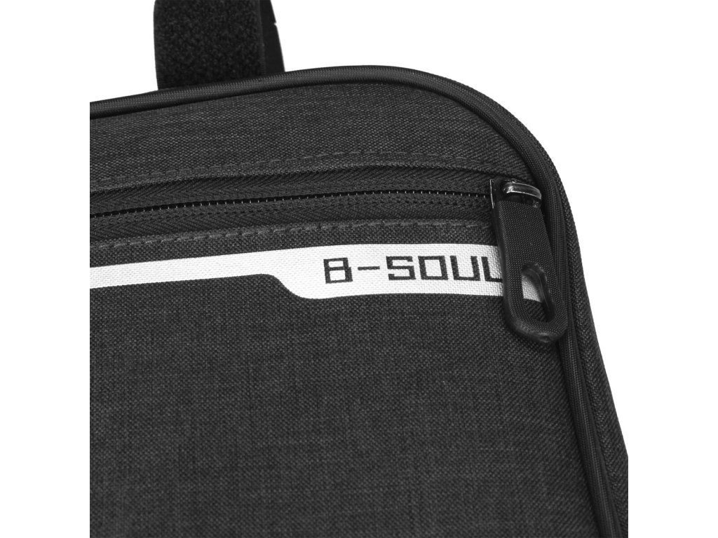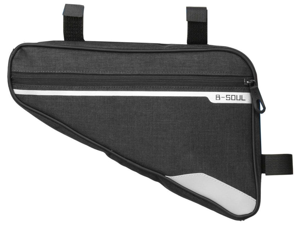 Cyklistická brašna B-SOUL Triangle 2.0 má jednoduchý a osvědčený design. Brašna je dostatečně velká na to, aby pojala osobní věci a zároveň je dostatečně malá na to, aby nijak nepřekážela při jízdě. Triangle 2.0 brašna má jednu přihrádku na zip a jednu vnější síťovanou přihrádku s rychlým přístupem. Brašna Triangle 2.0 tak poskytuje místo nejen pro klíče, peněženku a mobil, ale i pro cyklistické rukavice nebo základní nářadí pro případnou opravu. Svým tvarem brašna minimalizuje odpor vzduchu a nepřekáží nohám při šlapání. Triangle 2.0 brašna je zhotovená z pevného polyesterového plátna s vnitřním PU zátěrem, který ochrání obsah tašky před promočením i při nenadálé prudké bouřce. Rozměry brašny ve tvaru pravoúhlého trojúhelníku jsou 34 x 29 x 20 x 5 cm a má tak objem téměř 1,5 litru. Instalace tašky je prostá. Tři našité pásky na suchý zip jednoduše připnete ke konstrukci bicyklu a je hotovo. Moderní cyklistické vybavení od společnosti B-SOUL vám zpříjemní výlety na kole.Doplňkové parametry
