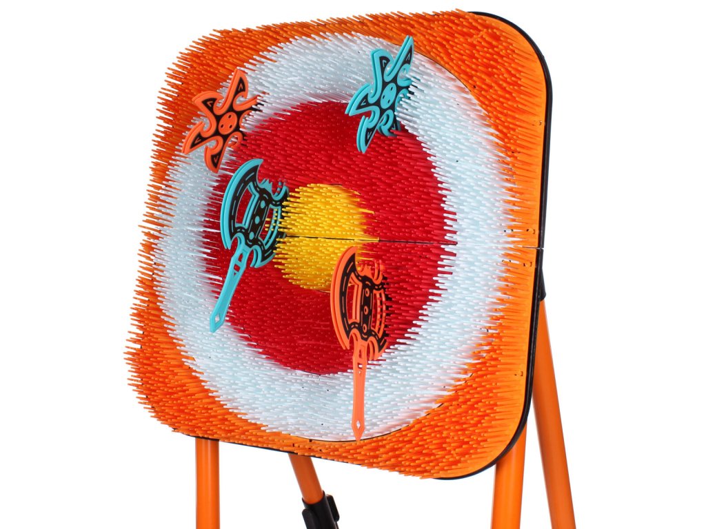 Připravte se na pořádnou dávku zábavy a zdravého soupeření s hrou Merco Viking Axe! Tento plastový terč se skládací konstrukcí je ideální pro vytvoření napínavé soutěže o největší přesnost hodu doma, na zahradě i na venkovních akcích. Součástí balení je osm plastových sekyrek a osm vrhacích hvězdic, díky nimž si hru může užít více hráčů najednou. Složení je jednoduché a rychlé. Plastové sekyrky i hvězdice jsou navrženy tak, aby dobře přilnuly k terči. Hra podporuje koordinaci, soustředění a přesnost. - materiál: plast - součást balení: skládací konstrukce s terčem, 8 sekyrek, 8 hvězdic - celkové rozměry po složení:148 x 68 x 75 cm (výška x šířka x hloubka) - rozměry terče: 60 x 60 x 6 cm - rozměry sekery: 23,5 x 15 x 1 cm - hmotnost sekery: cca 105 g - rozměry hvězdice: 16 x 1 cm - hmotnost hvězdice: cca 70 g - jednoduchá montáž - rozměry balení: 64 x 34 x 30 cm - hmotnost balení: cca 11,5 kg - Není vhodné pro děti mladší 6ti let, používejte vždy pod dohledem dospělé a zodpovědné osoby!Doplňkové parametry