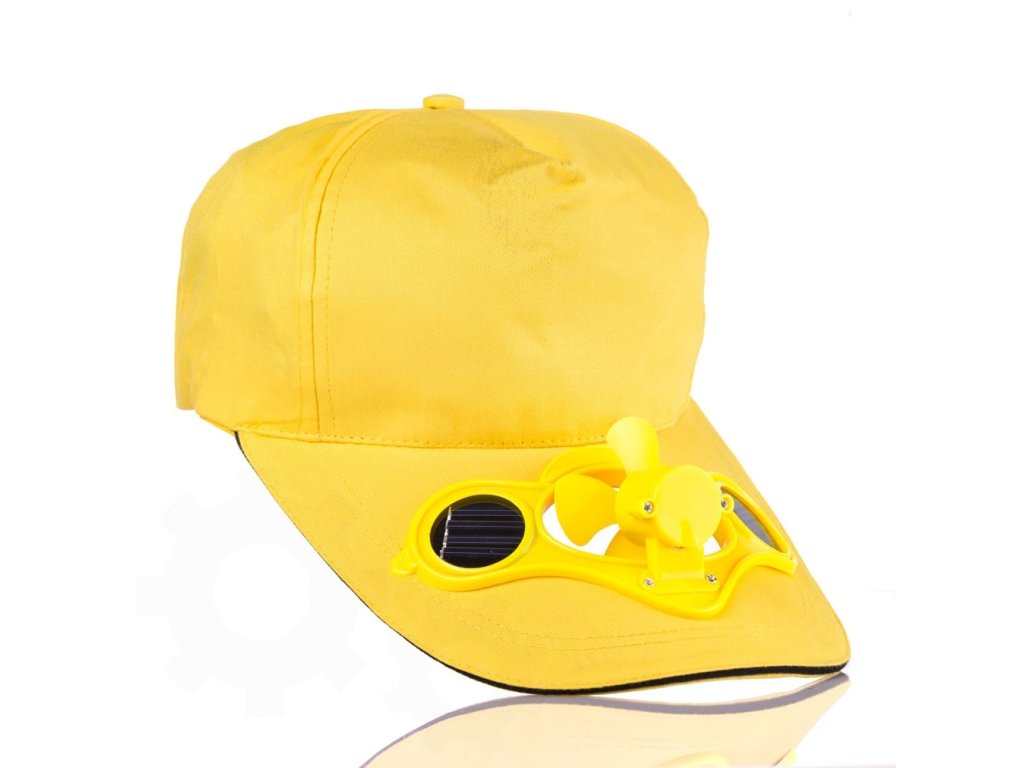 Solární čepice s větráčkem - žlutá, 00235
