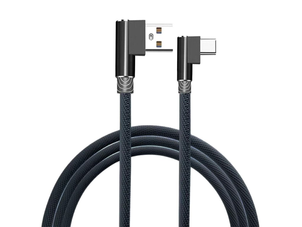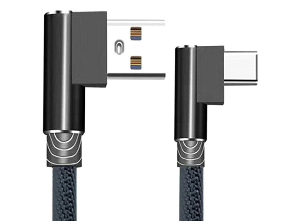 Zcela nový úhlový kabel USB typu A -> USB-C určený pro rychlé nabíjení (2A) všech zařízení kompatibilních se standardem USB-C. Vybaveno nylonovým opletem a pogumovanými USB konektory, které výrazně zvyšují odolnost proti poškození. Oba USB porty jsou umístěny pod úhlem 90 stupňů, což zabraňuje nadměrnému ohýbání kabelů a umožňuje pohodlné používání telefonu na výšku.