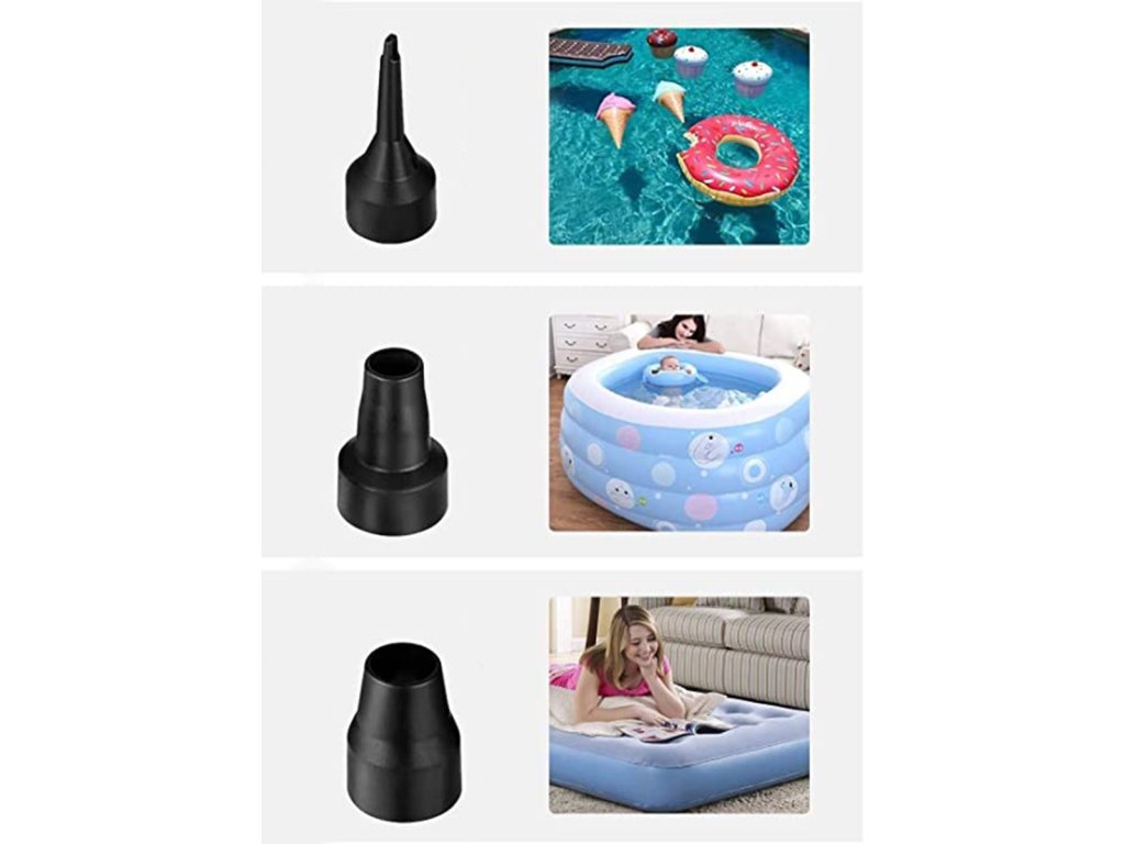 Tato elektrická pumpa, napájená ze zapalovače cigaret v autě nebo ze zásuvky, je ideální pro nafukování gumových matrací nebo míčů.