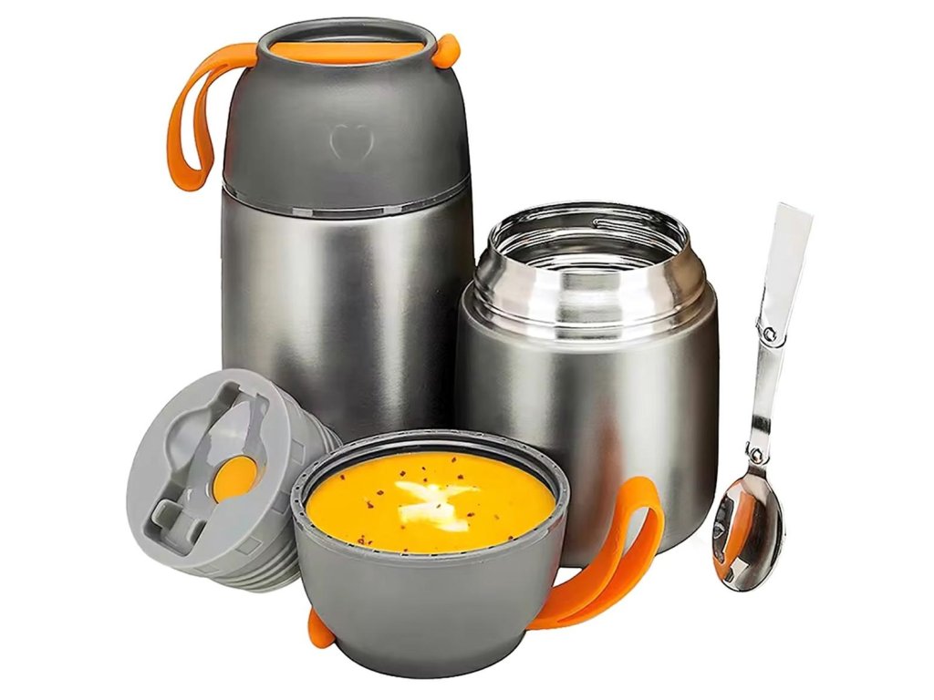 - Ocelová termoska na oběd se skládací lžičkou v ceně - ideální do práce nebo do školy.