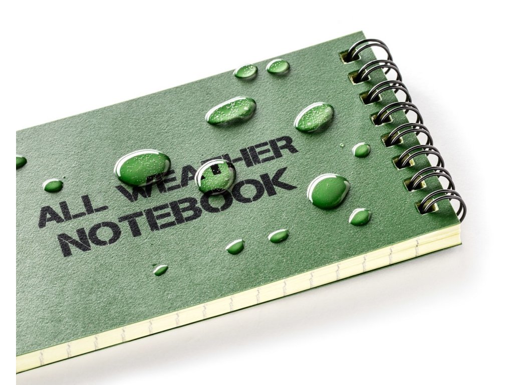 Po delším vystavení vodě mohou stránky zvlhnout, ale vaše poznámky zůstanou čitelné a stránky schnou poměrně rychle. Stránky jsou i přes vodotěsný povrch hořlavé, takže je lze použít i při zakládání ohně.