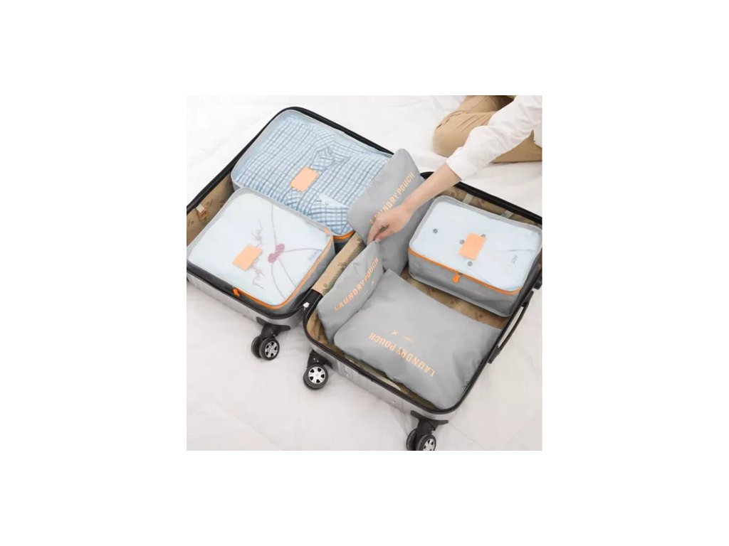 - VELKÁ SADA - sada se skládá ze 6 sáčků, které vám pomohou udržet pořádek v kufru a hotelovém pokoji. Šest pořadatelů o různé velikosti, kapacity a účely vám usnadní dovolenou. Organizéry vám umožní samostatně třídit a balit spodní prádlo, boty, kosmetiku nebo kabely a nabíječky. Díky nim si do cestovní tašky sbalíte pár bot navíc a nezašpiníte si s nimi kufr ani jiné oblečení!