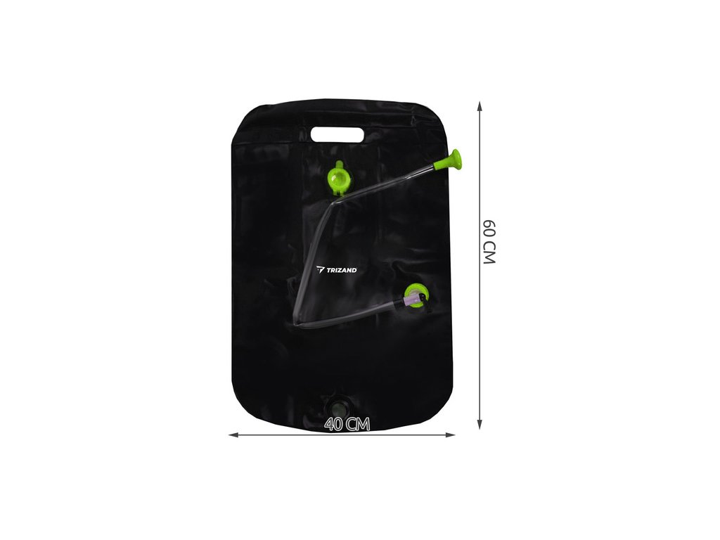 - SPECIFIKACE - kapacita: 20 l; doporučená doba ohřevu na slunci: 3 h; rozměry: 60 x 40 cm; hmotnost sprchy: 0,355 kg; hmotnost sprchy s obalem: 0,428 kg.