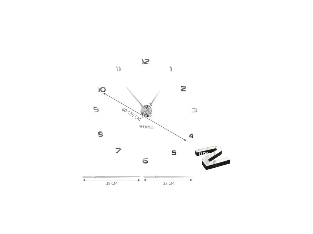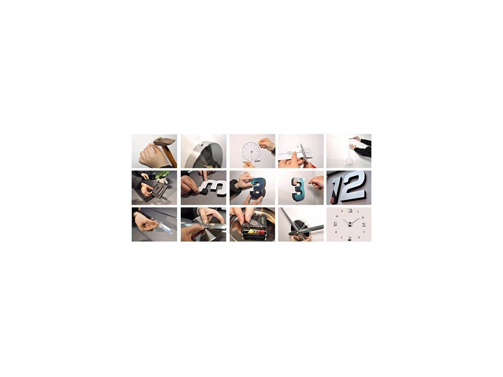 Samomontážní hodiny mají krásný a velmi působivý vysoce lesklý zrcadlový efekt. Nejlépe vypadají hodiny s průměrem od 60 (ručičky blízko číslic) do 130 cm. Jednotlivá čísla se montují pomocí přiložené samolepicí pásky. Hodiny se hodí ke každé barvě stěny. Čísla si můžete uspořádat, jak chcete - klasicky do kruhu nebo jejich otáčením/posouváním vytvoříte nepravidelnou kompozici - vše záleží na vás!