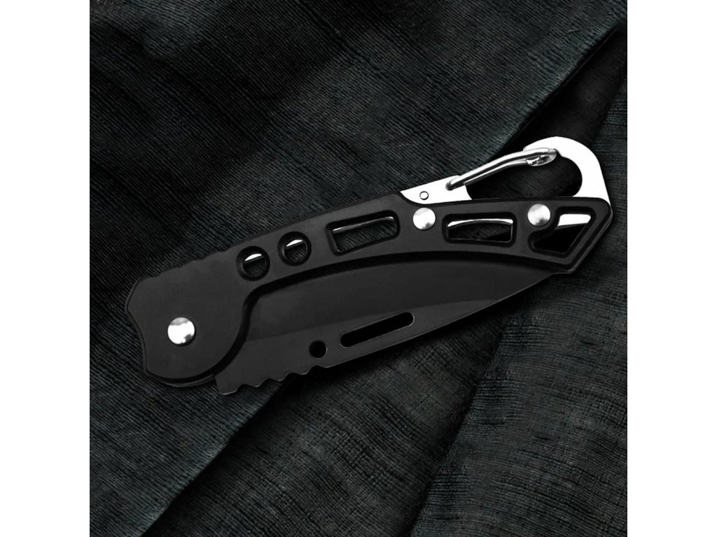 Skládací ostrý nůž s hladkou čepelí. Vybaveno řádně zajištěnou ocelovou čepelí a přídavnou karabinou na konci rukojeti. Ideální pro trénink a sebeobranu. Lze pohodlně rozložit jednou rukou. Nůž je vybaven zámkem otevírání a zavírání posuvného kloubu. Jeho kompaktní velikost umožňuje snadné schování a snadné přenášení.