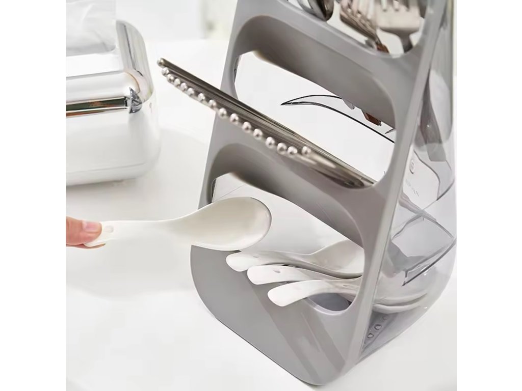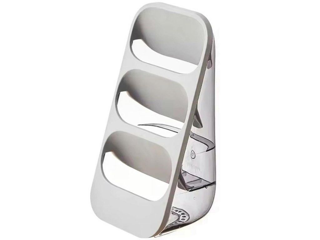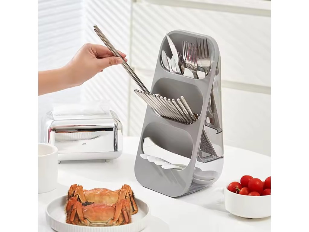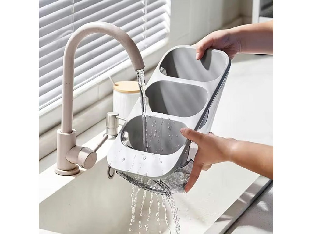 Kompaktní, volně stojící odkapávač na příbory. Vybaven až 3 otevřenými policemi pro snadné uspořádání. Má hustou síť otvorů (včetně základny), která zabraňuje hromadění vlhkosti. Tenký design výrazně usnadňuje umístění odkapávače v blízkosti dřezu. Tlumený vzhled se hodí do každé kuchyně.