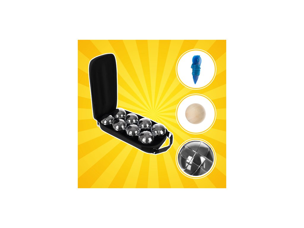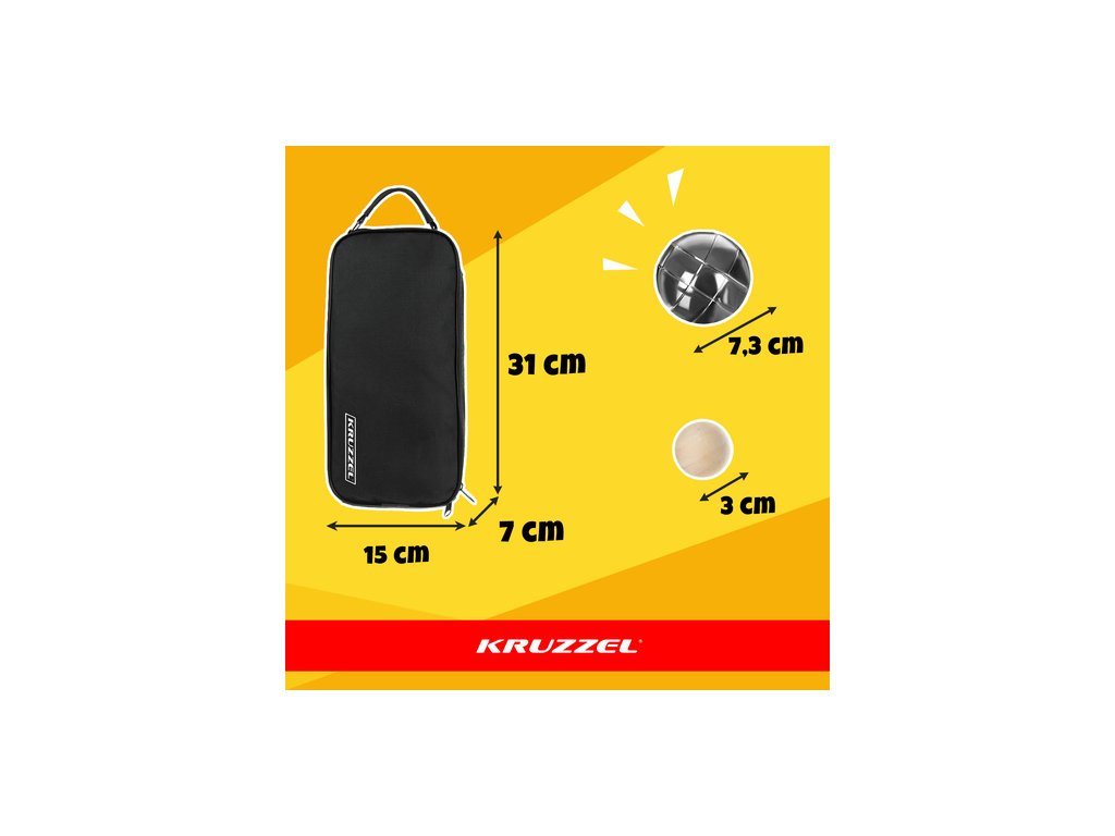- SPECIFIKACE - průměr koule: 7,3 cm; průměr dřevěné koule: 3 cm; rozměry pouzdra: 31 x 15 x 7 cm; hmotnost sady: 5,8 kg; hmotnost v balení: 6 kg.