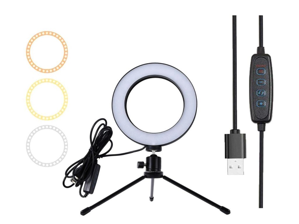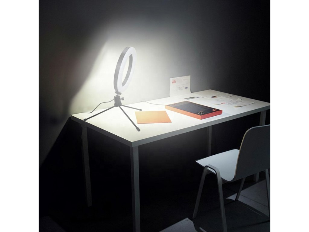 Dokonalá sada osvětlení pro každého selfie nadšence! LED kruhová lampa s možností změny bílé barvy (studená / teplá / neutrální). Kompletní se skládacím stativovým stojanem. Fotografování to rozhodně musíte mít! Nezbytné vybavení každého domácího fotoateliéru. Pro každou fotografii a záběr zajistí vhodné světelné podmínky. Kruhová konstrukce lampy umožňuje dokonalé a rovnoměrné osvětlení pracovního prostoru a fotografovaných osob či předmětů. Skvělé řešení, které bude fungovat v jakýchkoli podmínkách a v každém studiu. Díky své lehkosti a pohyblivosti jej lze s úspěchem použít i v exteriéru. Použití energeticky úsporných LED diod nevyžaduje napájení ze sítě, stačí běžný USB port nebo powerbanka.