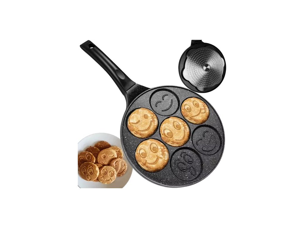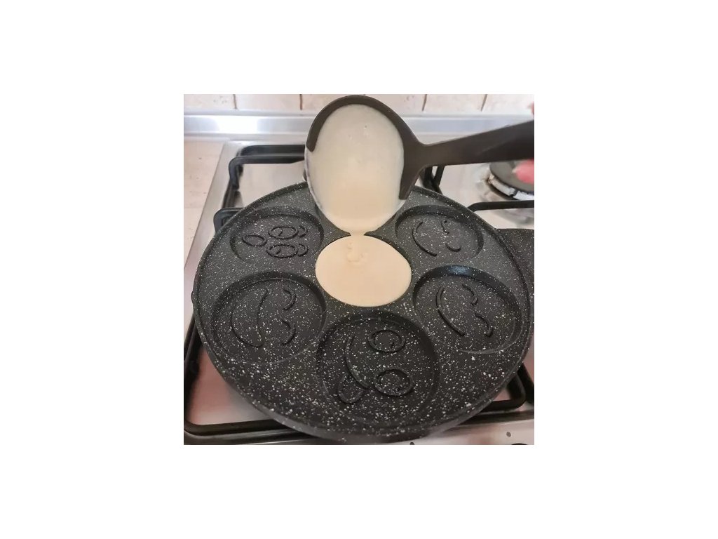 Jsou i vaše děti vybíravé? Tato pánev povzbudí k jídlu i toho nejodvážnějšího jedlíka. Usměvavá omeleta nebo palačinka dodá spoustu radosti při jídle a navíc vás k jídlu povzbudí. Zdobení + jedení je největší radost dětí. Velkým lákadlem při jídle bude tvoření úsměvů z ovoce a také malování očí marmeládou nebo čokoládovým krémem.