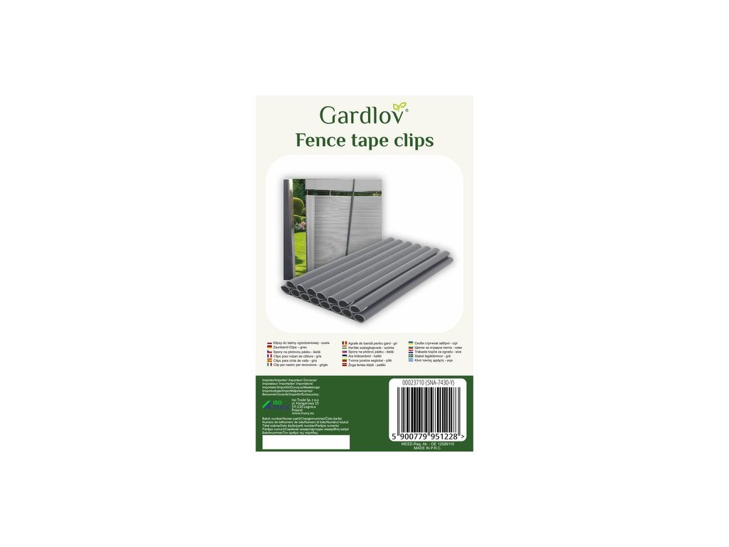 Představujeme naše páskové spony a háčky GARDLOV. Nezbytná pomůcka pro každého zahradníka, který chce na zahradě rychle a snadno nainstalovat oplocení pásku nebo jinou pásku. Naše klipy zajistí nejen rychlou instalaci, ale také pevné a bezpečné spojení, které udrží pásku na místě po mnoho sezón. Spony mají jednoduchý a spolehlivý design, který zajišťuje pevnou fixaci ohradníkové pásky umístěné na tyči.