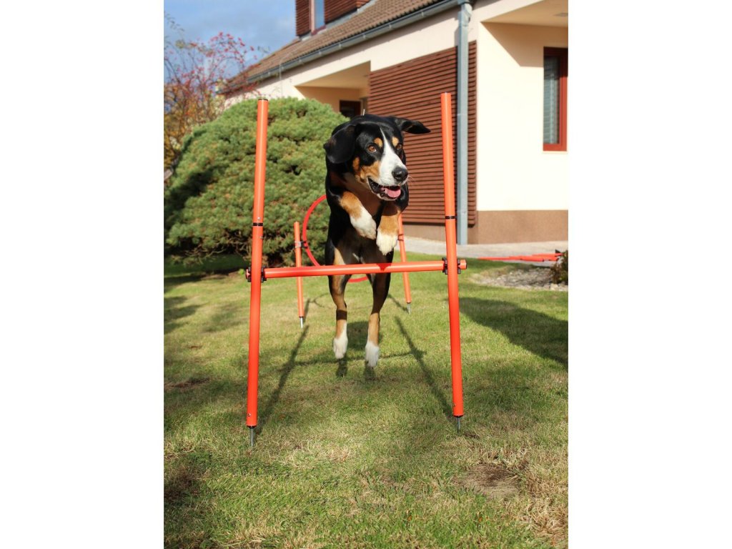 Vytvořte překážkovou agility dráhu pro vašeho čtyřnohého mazlíčka! Dog Trainer agility překážky pro psy jsou vyrobené z PVC a dají se mezi sebou propojovat. Spojením tyčí a bodců postavíte slalom, překážky na přeskoky (výšku nastavíte pomocí spojek) a různé druhy překážkových drah. Součástí balení je kruh o průměru 50 cm, kterým mazlíček může proskakovat. Velkou výhodou jsou montovací bodce. Tyče můžete zapíchnout do země. Celý set je zabalený v přenosné tašce a malé rozměry zaručí jednoduché přenášení. Díky tomuto setu připravíte mazlíčka na závody a dopřejete mu potřebný pohyb. Balení obsahuje: 10 ks skládacích tyčí (délka 50 cm) 4 ks připojovací tyče (délka 33 cm) 1 ks příčky (délka 55 cm) 10 ks bodců 4 ks spojek 1 ks kruh (průměr 50 cm) materiál: PVC hmotnost: 1,9 kgDoplňkové parametry