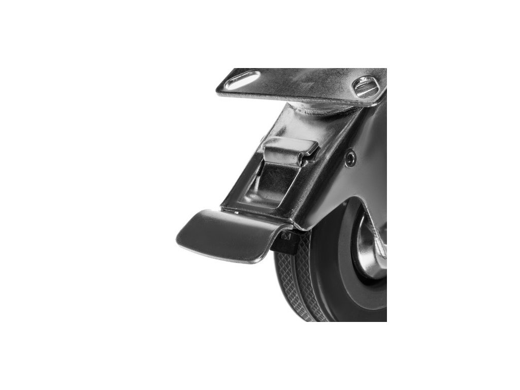 - ZAJIŠTĚNÍ BRZD NA 2 KOLECH - sada silničních kol je vybavena brzdami umožňují vám uzamknout/zastavit pohybující se předmět na místě . Stisknutím zámku můžete zabrzdit nebo zablokovat otáčení kol a plošiny.
