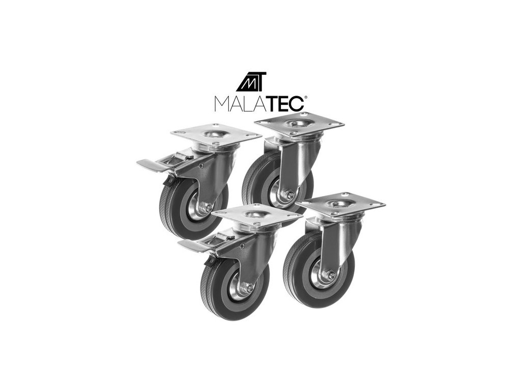 - VYSOKÁ KAPACITA + PRYŽOVÁ KOLA – celá sada 4 kol unese až 220 kg . Průmyslová kola se budou hodit na mnoha místech. Díky gumovým kolečkům zajistíme tichý pohyb a tlumení nárazů.