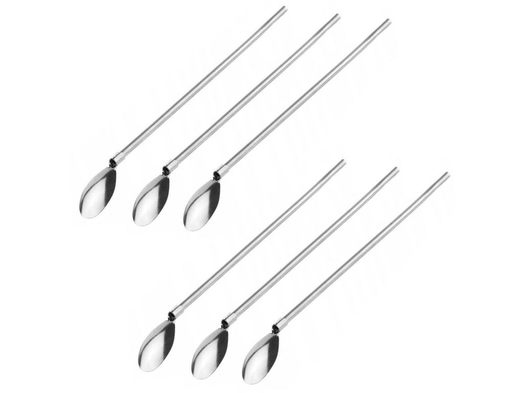 Sada 6 elegantních, opakovaně použitelných ocelových brček/lžící. Každé brčko má na konci lžičku, takže se skvěle hodí ke kávě a dezertům. Skvěle zpestří každý večírek, i ten nejotrlejší. Vyrobeno z nerezové oceli, zajišťující roky bezproblémového používání. Nemění chuť a vůni konzumovaných nápojů/dezertů.