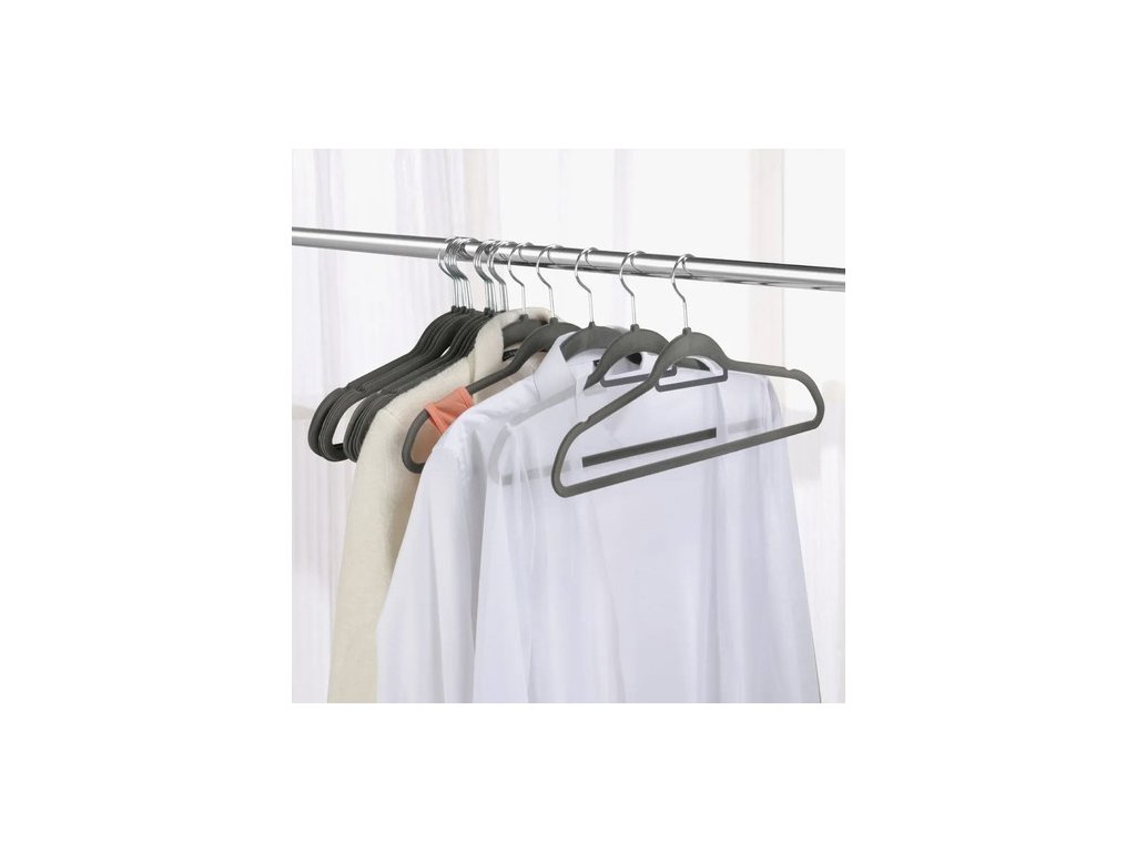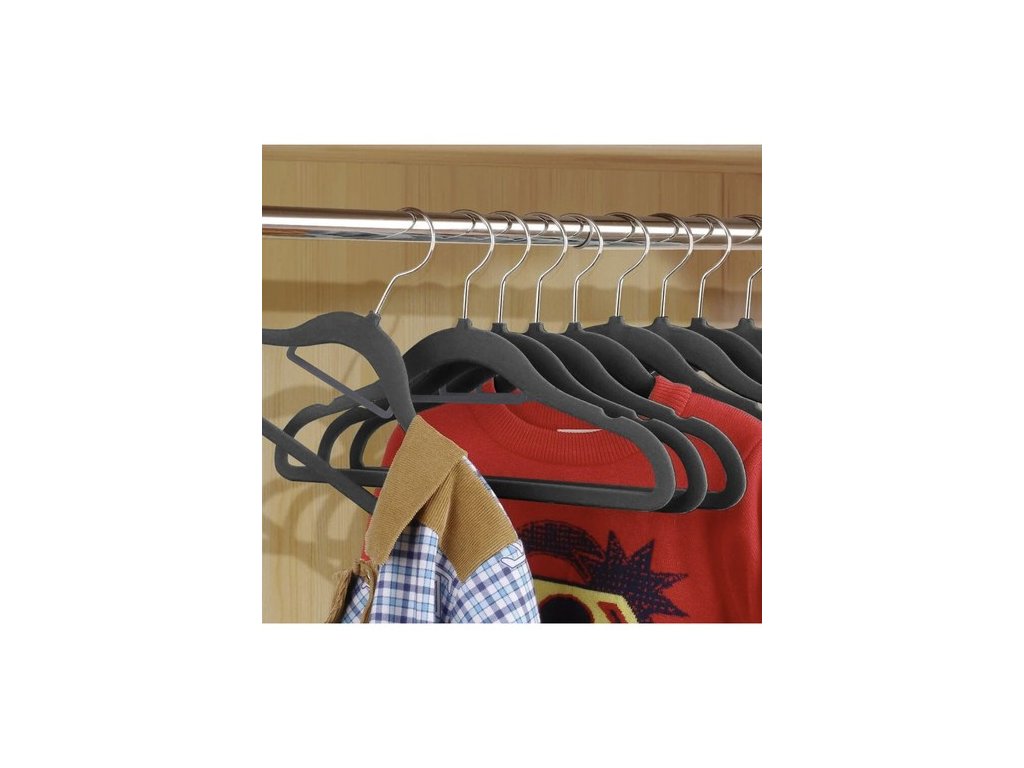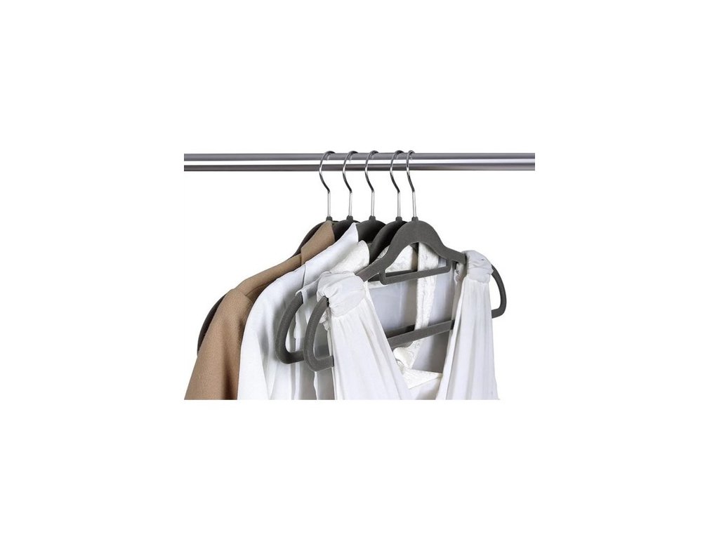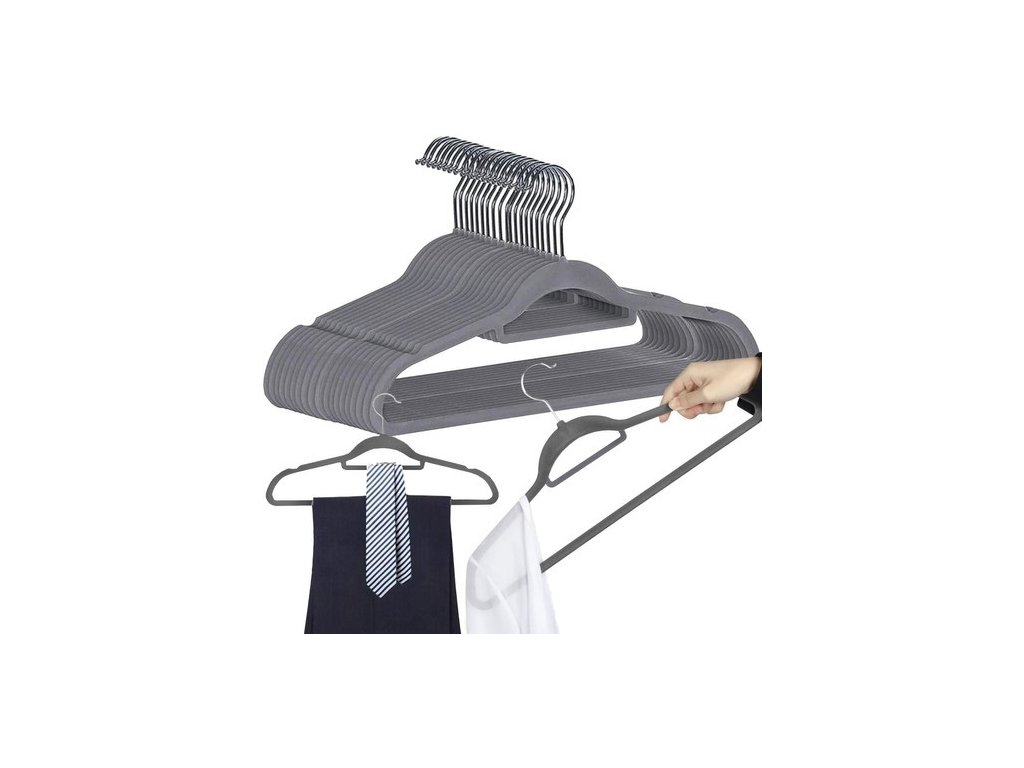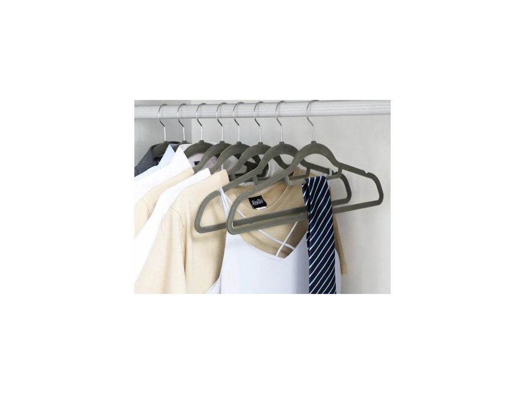 - VYSOKÁ KVALITA - ramínka jsou vyrobena z plastu a celá potažena sametem příjemným na dotek, takže oblečení neklouže. dodatečně Každý věšák má držák na kravatu, opasek nebo šátek a má prohlubně pro stuhy .