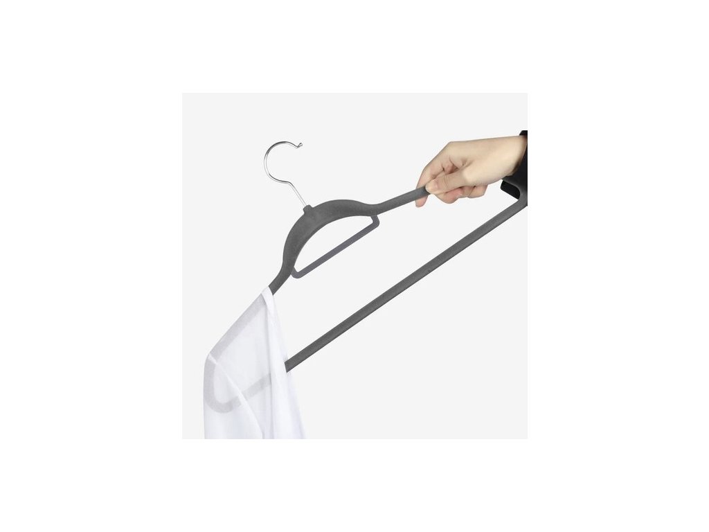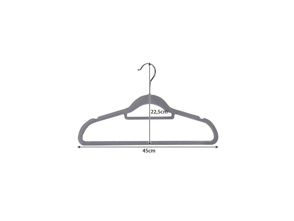 - SPECIFIKACE - šedá barva; materiál: plast, kov a samet; rozměry: 22,5 x 45 x 0,6 cm; hmotnost věšáku: 77 g; hmotnost soupravy: 1 540 kg; hmotnost balíku: 1,715 kg.