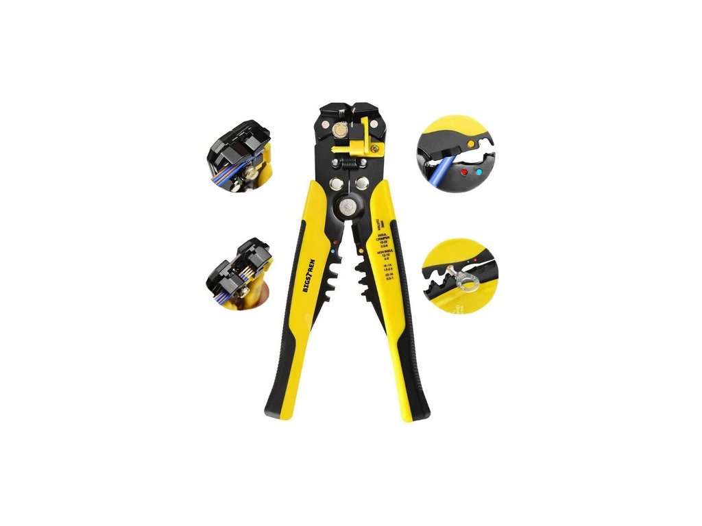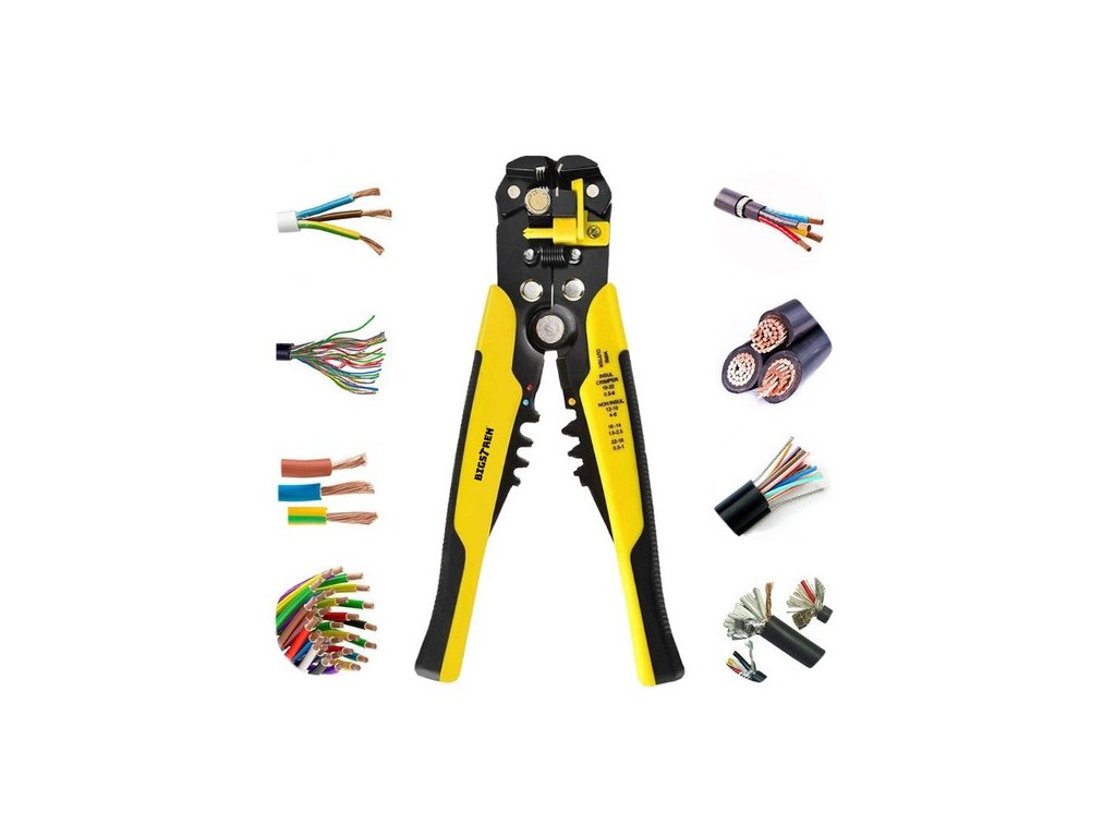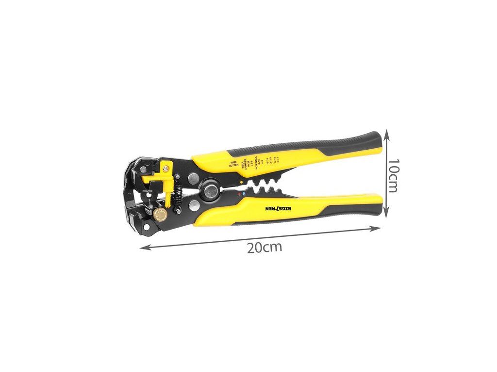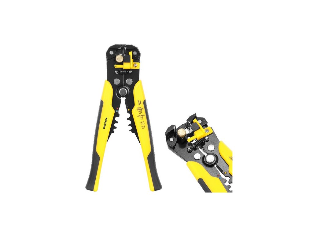 - SPECIFIKACE - výrobce: Iso Trade; značka: Bigstreen; barva: žluto-černá; materiál: slitina zinku, PP, TPR, železo; protiskluzová podložka: ANO; mechanismus: čelní, automatický; odstranění izolace z kabelů o průměru: 0,2 - 6 mm 2 (10 - 24AWG); krimpovací izolované koncovky konektoru: 0,5 - 6 mm 2 (22-10 AWG) a neizolované: 4 - 6 mm2 (12-10 AWG), 1,5 - 2,5 mm2 (16-14 AWG), 05 - 1 mm2 (22-18 AWG); rozměry (délka/šířka/výška): 20/10/3 cm; hmotnost: 0,35 kg; hmotnost balení: 0,4 kg.