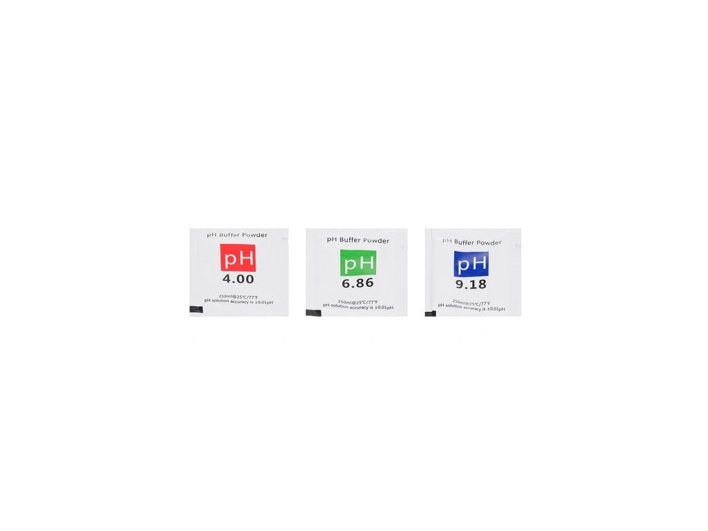 - 3 kalibrační pufry: 4,00, 6,86 a 9,18 pH