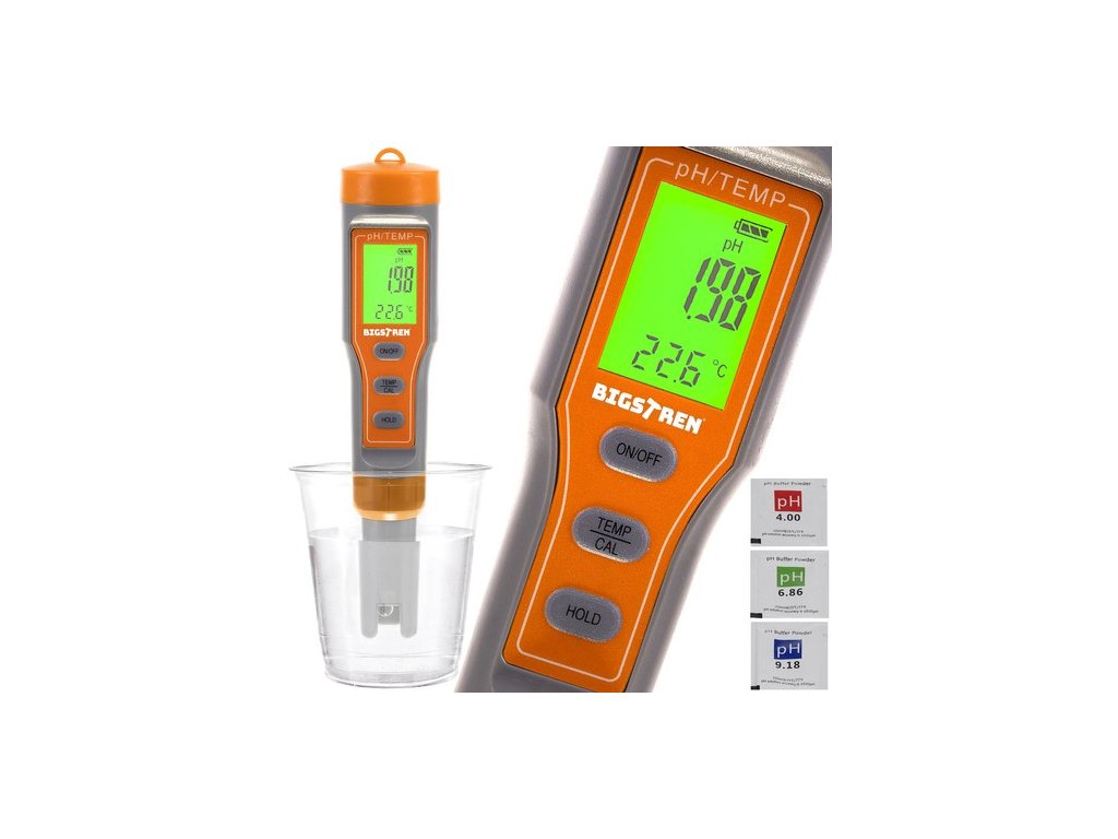 - SPECIFIKACE – materiál: ABS; vodotěsné pouzdro; současné měření pH a teploty; stupnice: pH: 0,00-14 pH; přesnost: ± 0,01 pH; rozlišení měření: 0,01 pH; teplota: 0,19 C-60,0 °C nebo 32,0-140,0 F; přesnost: ± 0,5 °C; rozlišení měření: 0,1 °C; kompenzace teploty kapaliny (ATC); napájení: baterie: 3x1,5V; kalibrace: 3-bodová – automatická; automatické vypnutí po 5 minutách; rozměry: 18,5 x 3,6 cm; hmotnost: 0,089 kg; hmotnost s obalem: 0,173 kg.