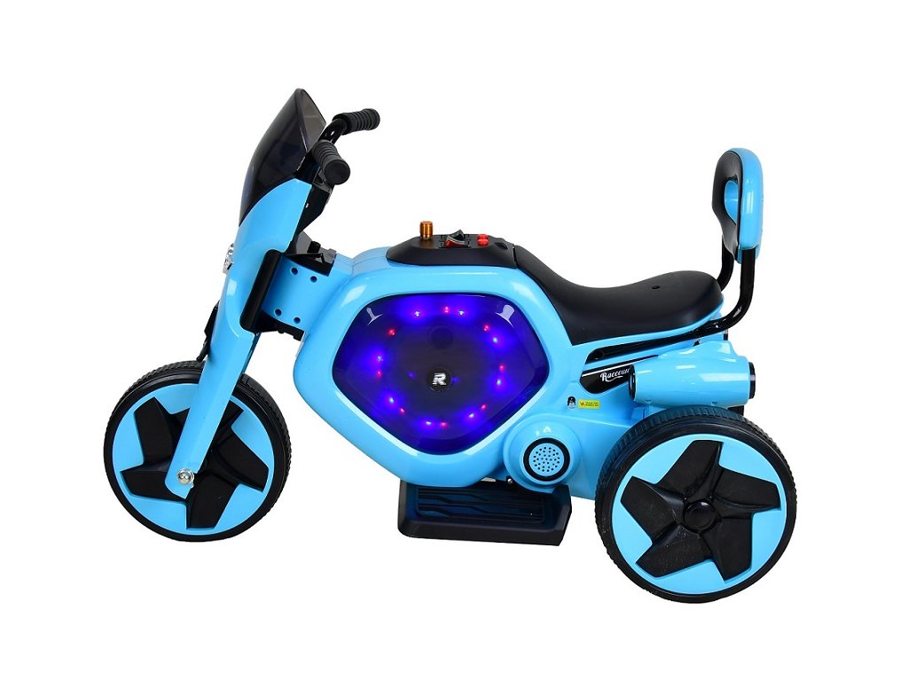 Dětská elektrická trojkolka v moderním designu na dobíjecí akumulátor. Trojkolka je určena pro jedno dítě a je vyrobena z odolných plastů. Stisknutím tlačítka lze zapnout zvukové a světelné efekty. Chod trojkolky je ovládán pomocí plynového pedálu, který je umístěn na stupátku.- elektrický motor