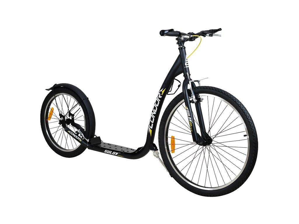 Sportovní koloběžka Sulov CONDOR je díky velkým nafukovacím kolům 26"/20" ideální pro jízdu ve městě i na zpevněných cyklostezkách.rám koloběžky z kvalitní odlehčené oceli