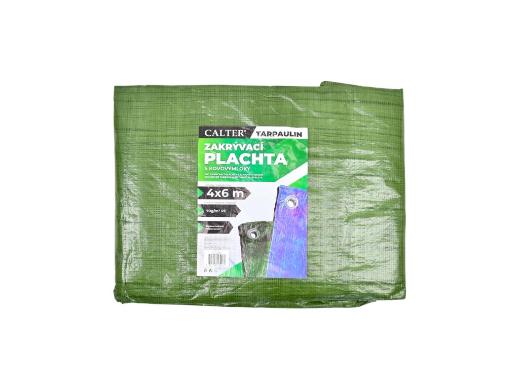 Univerzální zakrývací, izolační a stínící plachta s oky s vysokou odolností vhodná pro celoroční použití v domácnosti, na zahradě, stavbě a při rekreačních a sportovních činnostech. Chrání proti vodě a vlhkosti, prachu, mastnotě, slunečnímu záření a větru. Slouží jako ochrana a krytí stavebního materiálu, stavební mechanizace, nářadí, k zakrytí auta, dřeva, záhonu, bazénu. Používá se na dočasné zakrytí střechy při realizaci krovů či děravé střechy. Kovová oka jsou umístěna po celém obvodu, pomocí těchto ok je plachta dobře uchytitelná.Rozměr: 4x6 m, 70g/m2