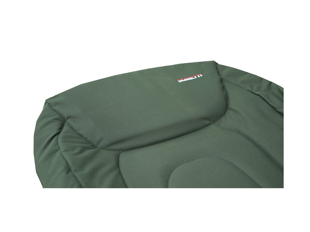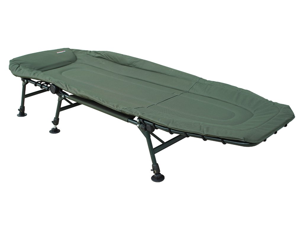 Lehátko Fishmaster s třemi páry nohou, ocelovou konstrukcí a matrací z 600D Oxford-Nylonu s termoizolační vrstvou. Celková nosnost je 130 kg. Lehátko má klouby sklonu zad, packy nohou s protiskluzovým dezénem, aretaci nohou proti jejich sklopení a jednoduchý stavitelný zámek.6 x noha