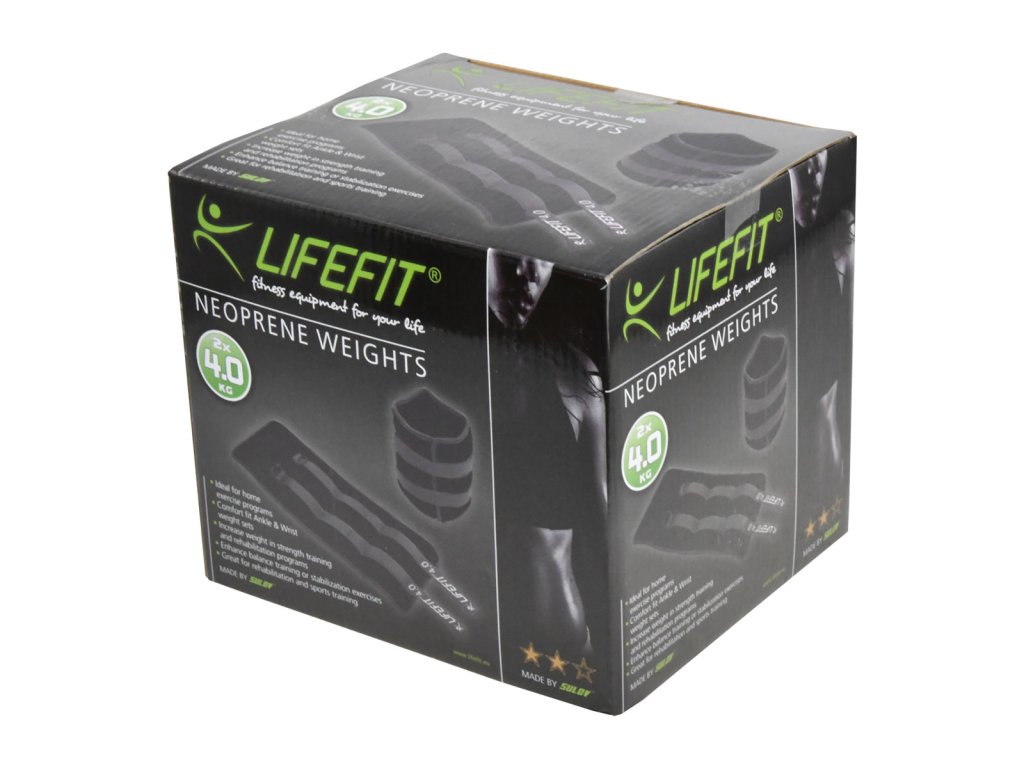 Neoprenová zátěž LIFEFIT ANKLE / WRIST WEIGHTS 2 x 4,0 kg slouží jako pomůcka pro zefektivnění tréningu a zvýšení zátěže při cvičení, chůzi či běhu. Neoprenová zátěž LIFEFIT zefektivňuje posilování a spalování kalorií. Pevné a bezpečné stahovací pásky na suchý zip si poradí s různými průměry paží. Příjemný neoprenový materiál je odolný vůči vlhkosti a potu.- dodáváno v páru