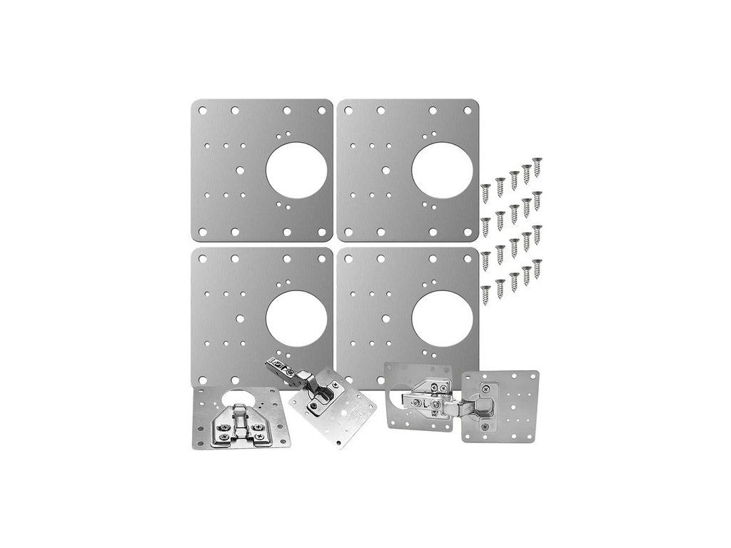 - 4 SADY V SADĚ – Sada obsahuje 4 destičky a šrouby pro montáž. Tato sada umožňuje opravu 2/4 pantů. Dlaždice mají univerzální použití a lze jimi opravit prakticky jakýkoli kus nábytku.