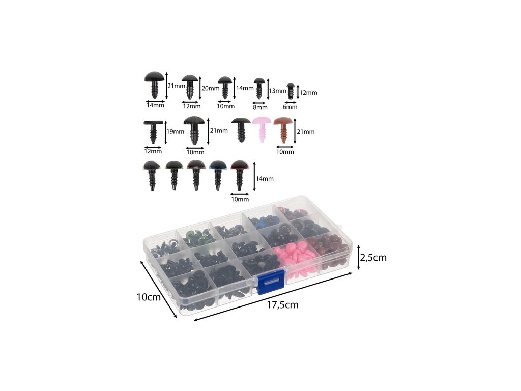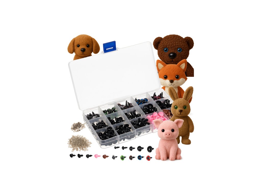 Oči pro plyšáky a nosy pro medvídky, bezpečné, sada 560 kusů + pouzdro!