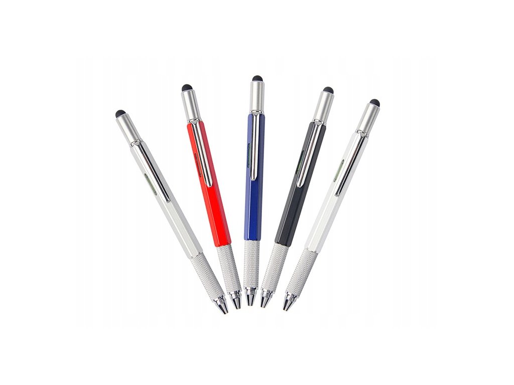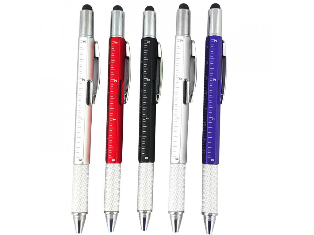 Praktické multifunkční pero v pěkném designu! Kromě klasické kuličkové propisky má pero 5 dalších užitečných funkcí. Na konci pera se nachází stylus pro ovládání dotykového displeje. Pod ním naleznete dva šroubováky – plochý a křížový. V těle pera je k dispozici vodováha a pravítko s měřítkem. Samozřejmostí je klip k připnutí na blok nebo na kapsu košile. Multifunkční pero najde uplatnění ve škole, v práci i ve volném čase.