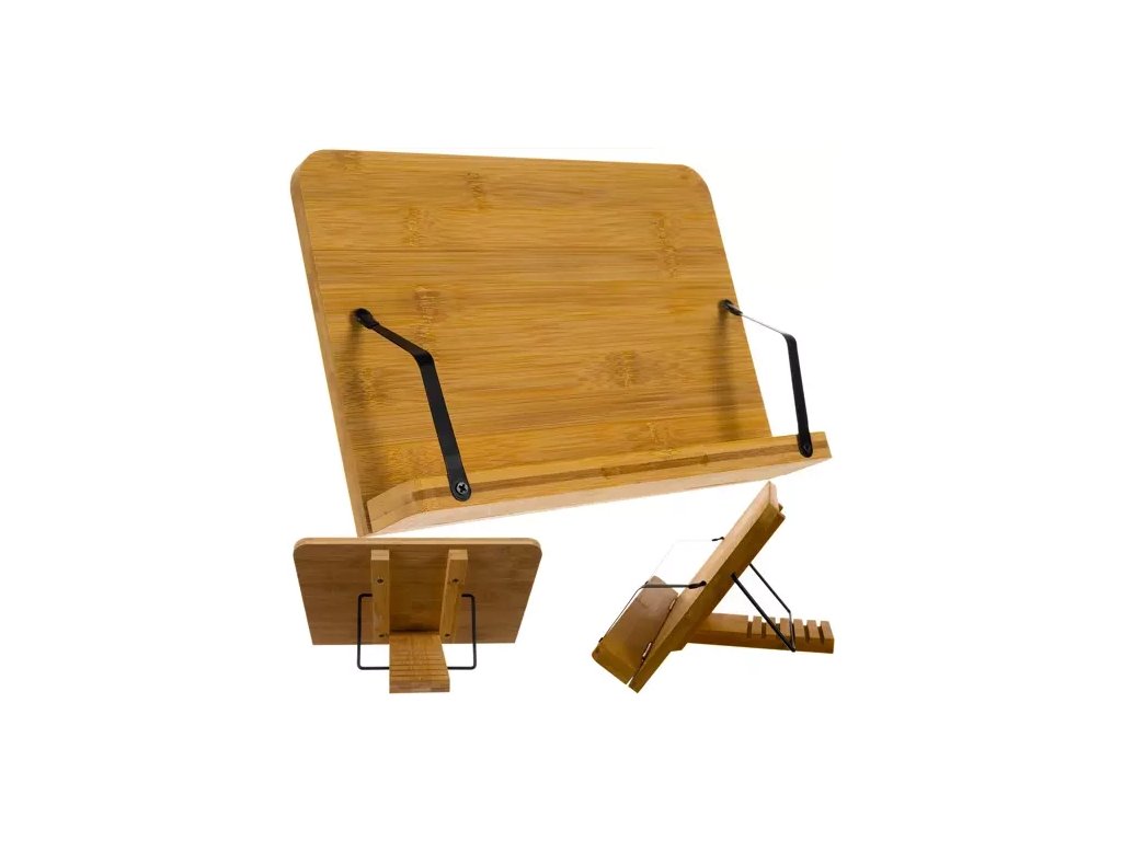 Bambusový stojan na knihy je nenahraditelná vychytávka pro každého milovníka literatury nebo studenta. Nastavitelný stupeň sklonu vám umožní vybrat si tu nejpohodlnější polohu pro čtení. Vzhledem k tomu, že ve složeném stavu zabírá stojánek stejné místo jako kniha, můžeme ji uložit na polici mezi naši oblíbenou literaturu. Stojan je vyroben z přírodního bambusu. Je tedy nejen stylový, ale i praktický.