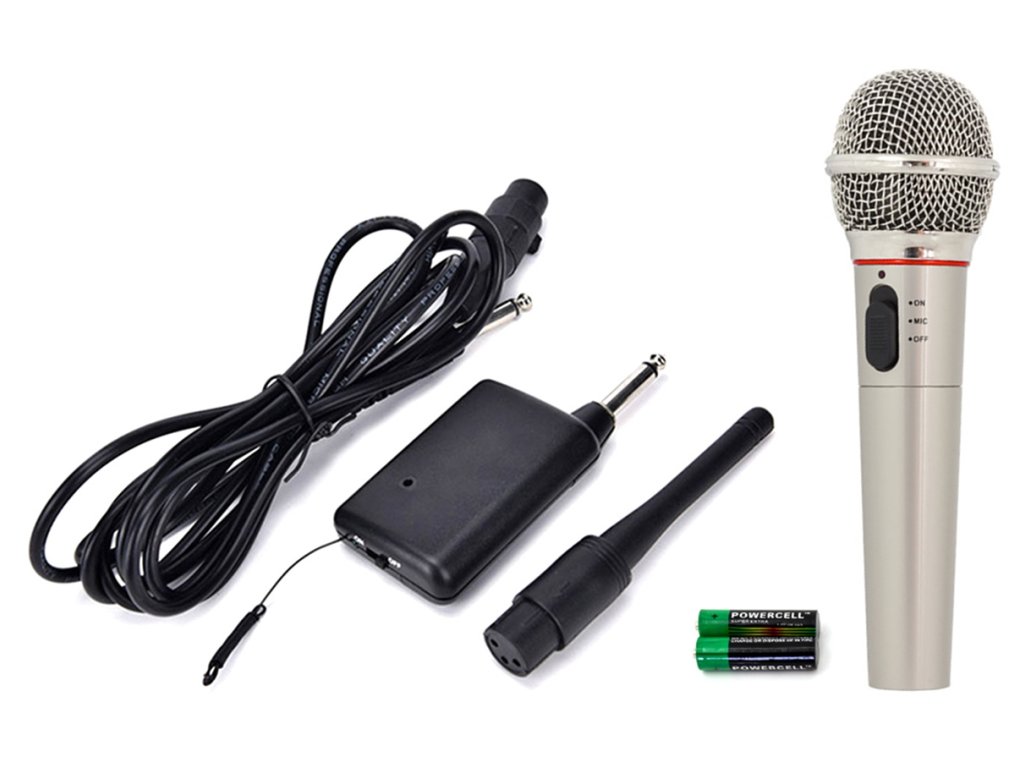 Bezdrátový i kabelový mikrofon, ideální pro karaoke vystoupení/nahrávání zpěvu, konferenční místnosti, svatby, projevy atd.