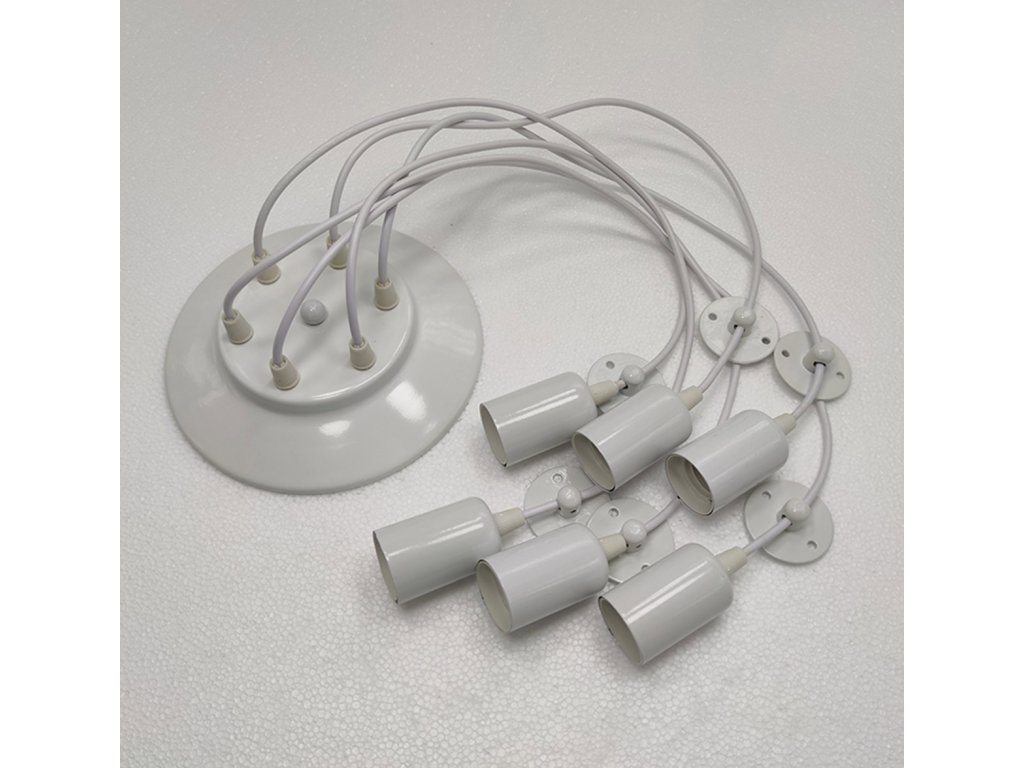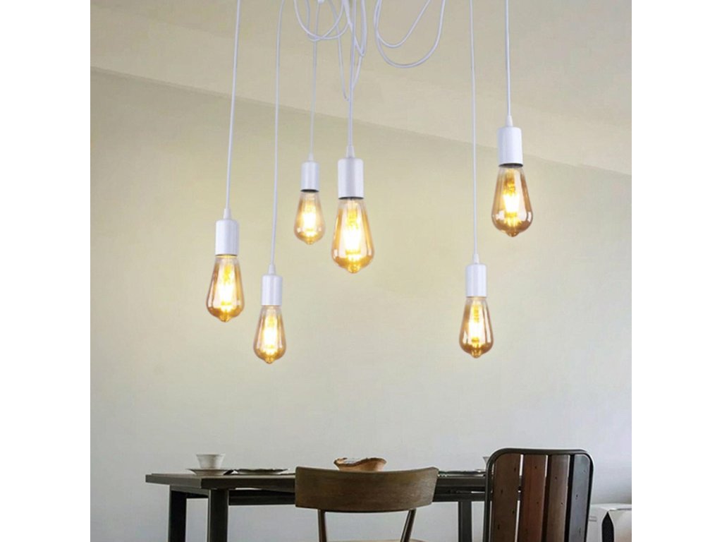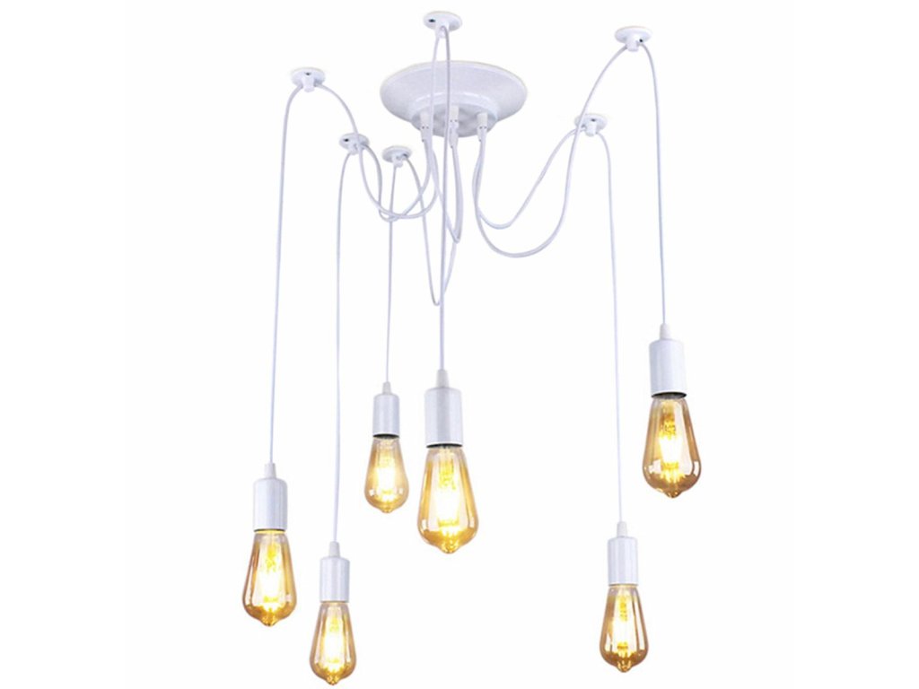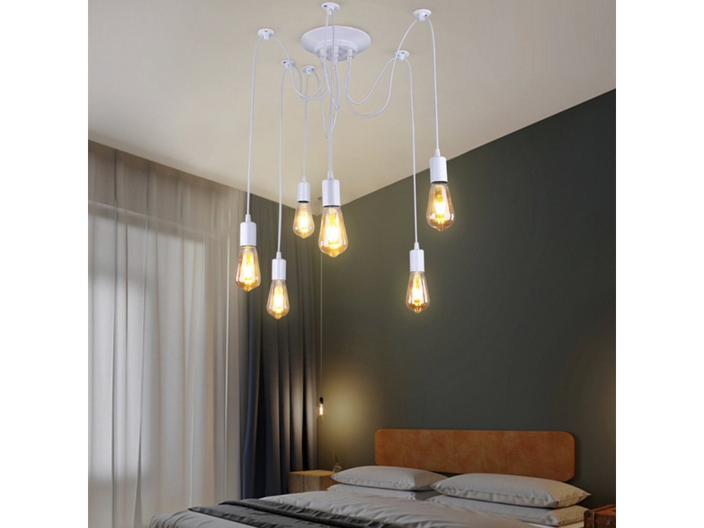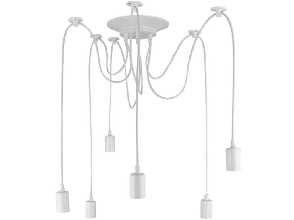 Nádherný dekorativní prvek - bílý pavoučí lustr s až 6 světelnými body! Všechny světelné body mají 115 cm dlouhý kabel zakončený paticemi na žárovky E27. Je možné ji zkrátit, což jí umožní lépe se přizpůsobit podmínkám uvnitř místnosti. Je to skvělý nápad pro zdobení elegantních pokojů ve stylu podkroví nebo pro rozjasnění tmavých koutů! Skvěle se hodí jak ke klasickým kulatým žárovkám E27, tak ke všem dekorativním se stejným závitem!