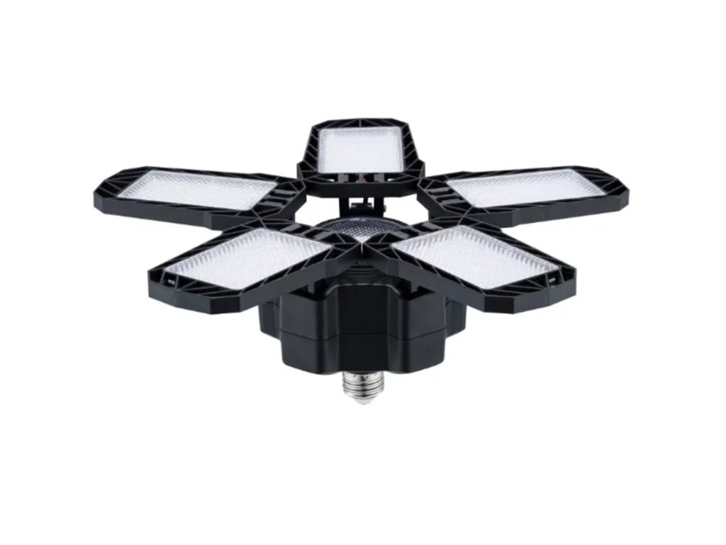 Spolehlivé, skládací LED stropní svítidlo pro kutily vybavené až 125 silnými LED diodami - nenahraditelné v dílnách a službách, kutilských garážích nebo i při výměně kola. Vybavena pohodlným integrovaným závitem E27, který umožňuje použití přímo ze standardní objímky žárovky na stropě místnosti. Pět nezávisle sklopných ramen vám umožní dokonale přizpůsobit směr světla vašim aktuálním potřebám v rozsahu 0 až 90 stupňů. Energeticky úsporné LED osvětlení pomáhá snižovat účty za elektřinu při zachování mnohem delší životnosti než standardní žárovky.