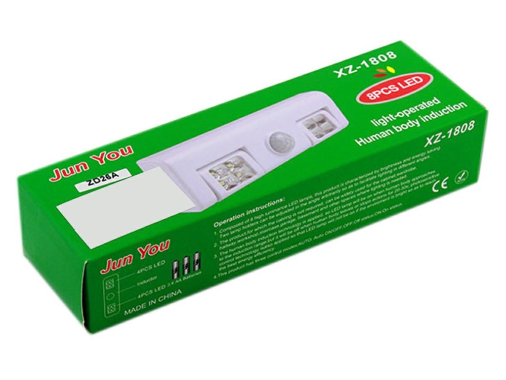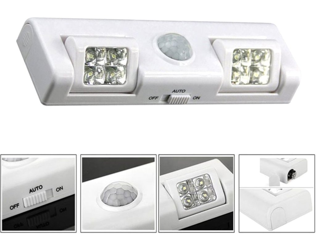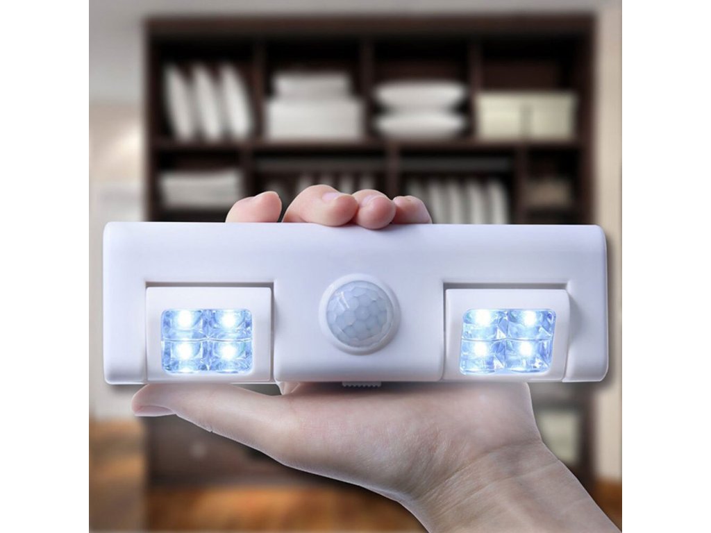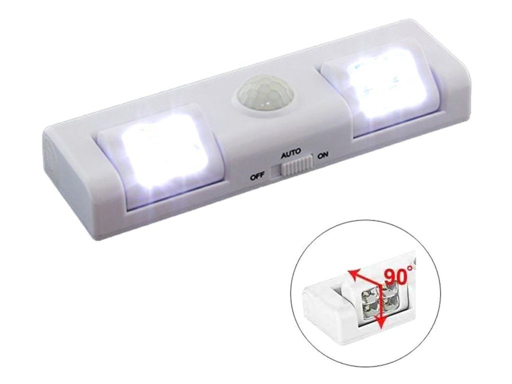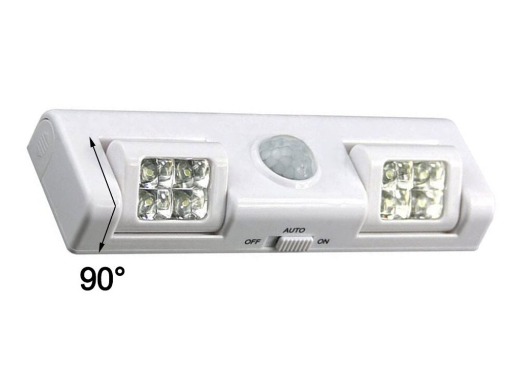 - Energeticky úsporný - vybaven 2 pohyblivými světelnými zdroji. Každý se 4 LED osvětlovacími body (napájení 3 AA bateriemi - standardní baterie).