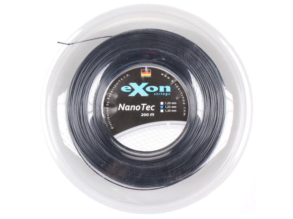 Exon NanoTec je úžasný kopolyesterový tenisový výplet s jedinečnou technologií LaserTec® vyvinutý a vyrobený v Německu pro profesionální tenisty. Nová technologie LaserTec® dodává této tenisové struně neuvěřitelnou kontrolu a stabilitu napětí. Technologie LaserTec® představuje speciální povrchovou úpravu, která minimalizuje tření a výpletu zajišťuje raketový snapback, zkracuje dobu kontaktu míčku s výpletem a oproti většině kopolyesterových / nylonových výpletů výrazně prodlužuje životnost. Odolnost tenisového výpletu Exon NanoTec je dokonce taková, že i jeho nejslabší varianta je vhodná pro silově zaměřené hráče, kteří pro svojí hru potřebují charakteristiku tenčí struny. Pokud chcete využít neuvěřitelné vlastnosti tohoto výpletu na sto procent, doporučujeme s ohledem na jedinečnou technologii LaserTec® a její molekulární strukturu vyplétat tenisový výplet Exon NanoTec na o 15-20% menší napětí, než je obvyklé u běžných kopolyesterových / nylonových tenisových strun.Doplňkové parametry